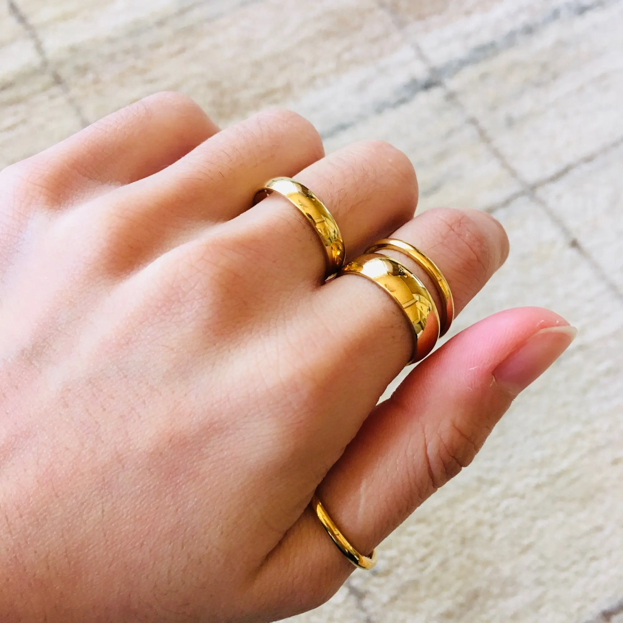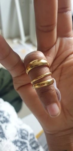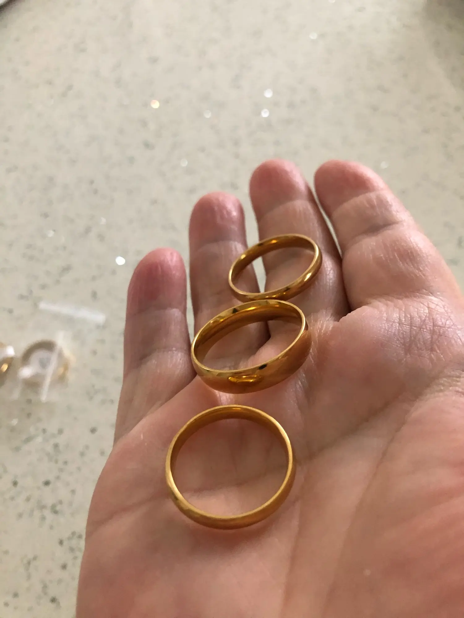 Люблю мои новые кольца! Я купил 2 мм, 4 мм в размере 8 и регулируемое кольцо с буквой «B» и кольцо с пряжкой. Мой обычный размер кольца 7,5, но он идеально сидит. Цвет-это красивое Настоящее Желтое золото. Это не выглядит подделкой. Кольца легкие, но они прочные и прочные. 2 мм и 4 мм не сгибаются. С достаточным давлением буквы «B» сгибаются, так что вы знаете, что он не выдает быстро. На кольцах нет шва. Они ровные и гладкие. Никаких дефектов. Я живу в США, и они были доставлены раньше, чем ожидалось. 27 дней, поэтому меньше месяца! Они аккуратно упаковываются индивидуально в маленькие пластиковые пакеты. Мне нравится хранить эти сумки и хранить их в своей коробке для ювелирных изделий. Они являются бесплатными. Пока нет обесцвечивания или сколов. Высокое качество и очень сложные. Я рекомендую купить букет для красивого многослойного образа. Они сделают отличные рождественские подарки, так как в тренде минимальное Золотое ювелирное изделие. Не могу ошибиться с этим продуктом.