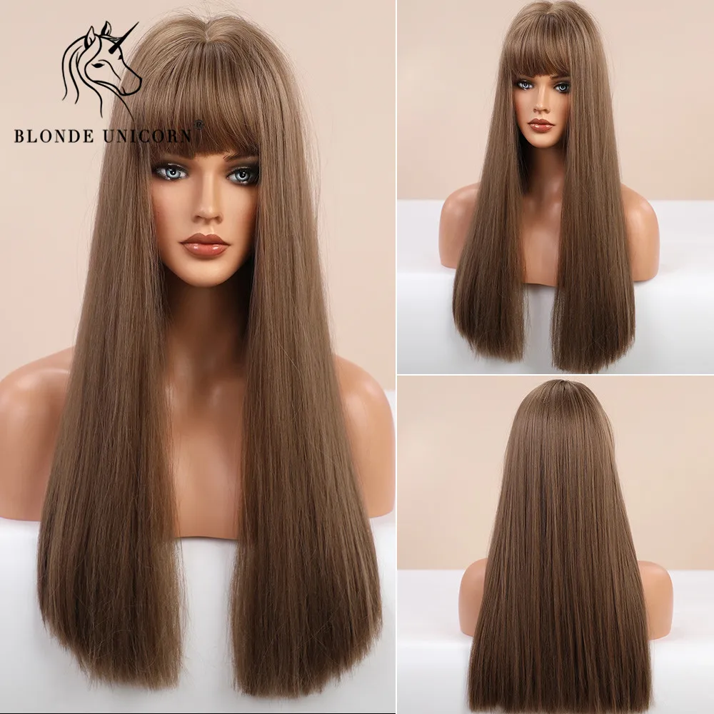 Парик Синтетический средней длины с челкой, светлый единорог, прямо...