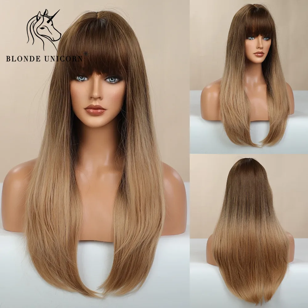 Синтетические парики средней длины блонд единорог с челкой парик из...