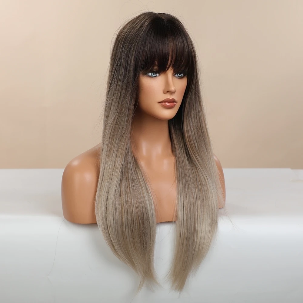 Парик из синтетических длинных прямых темно-каштановых волос, блонд...