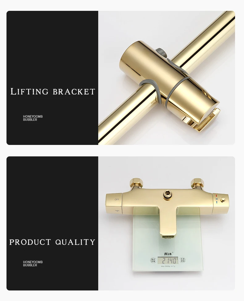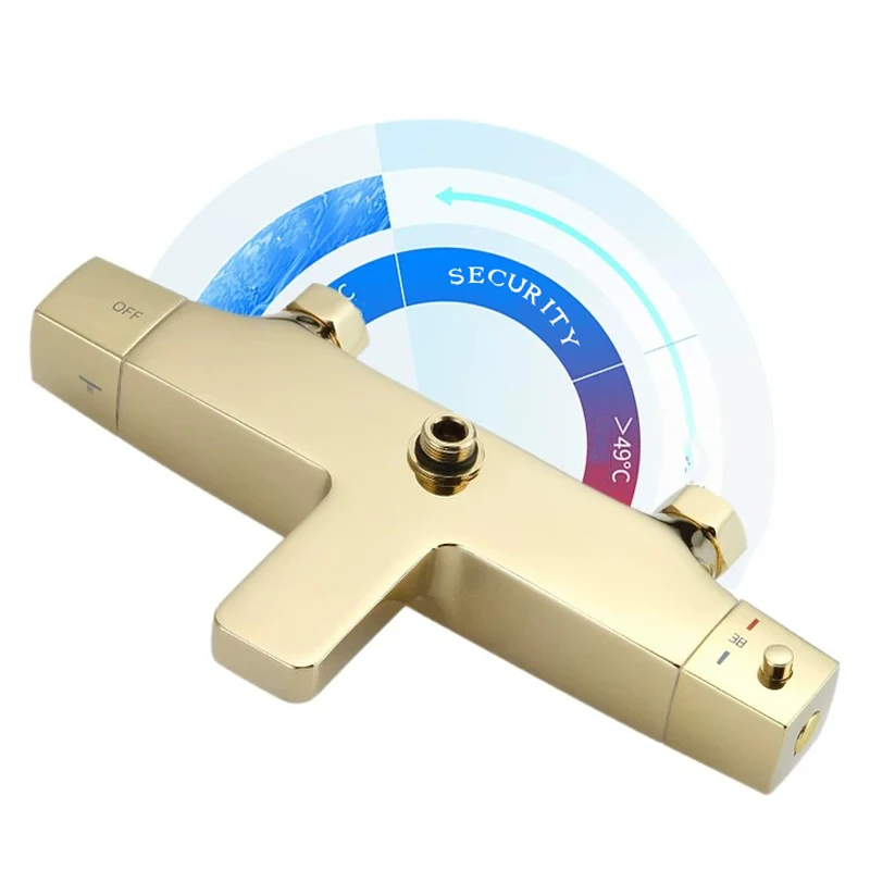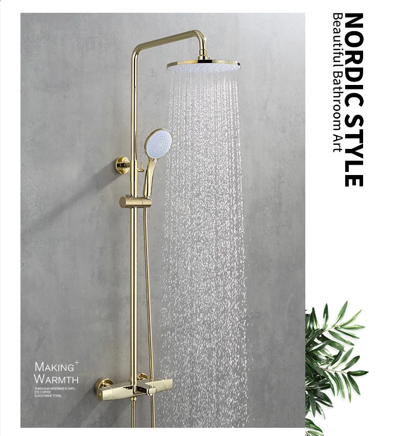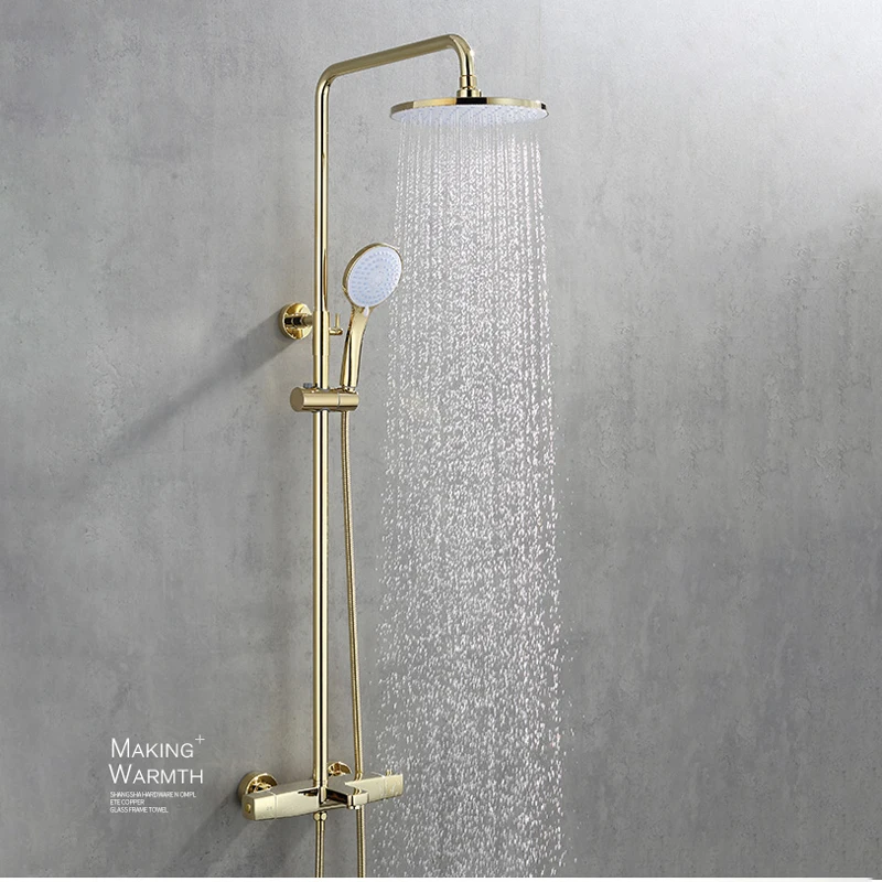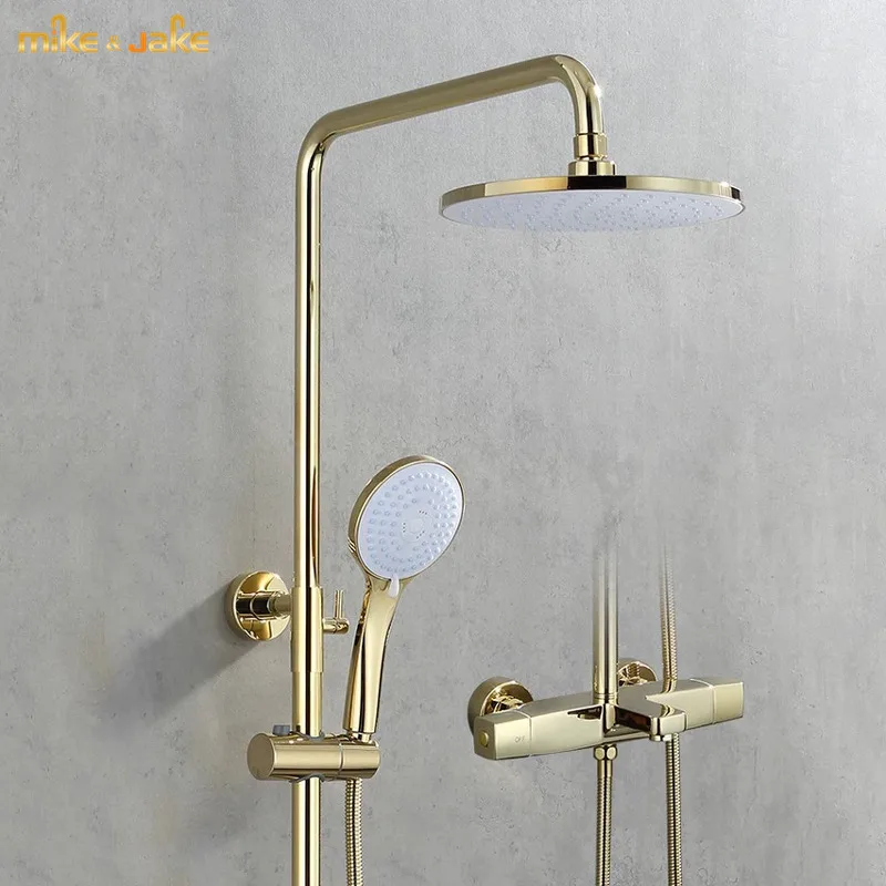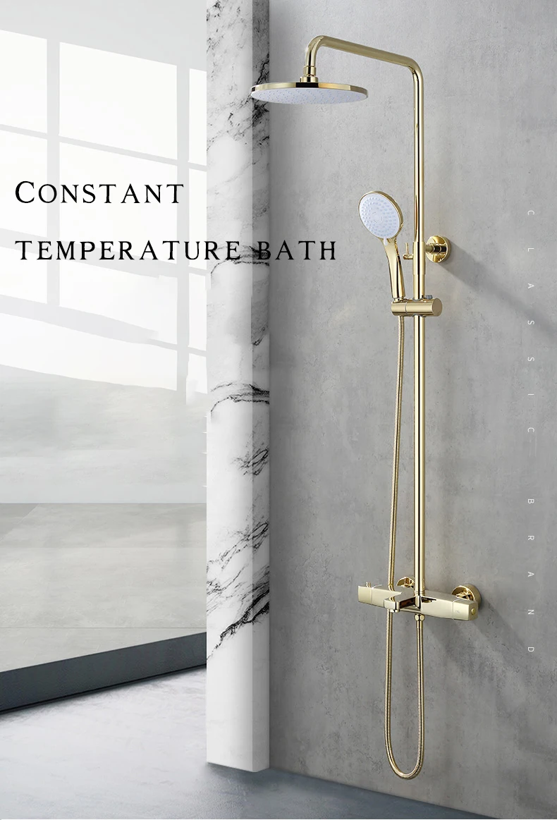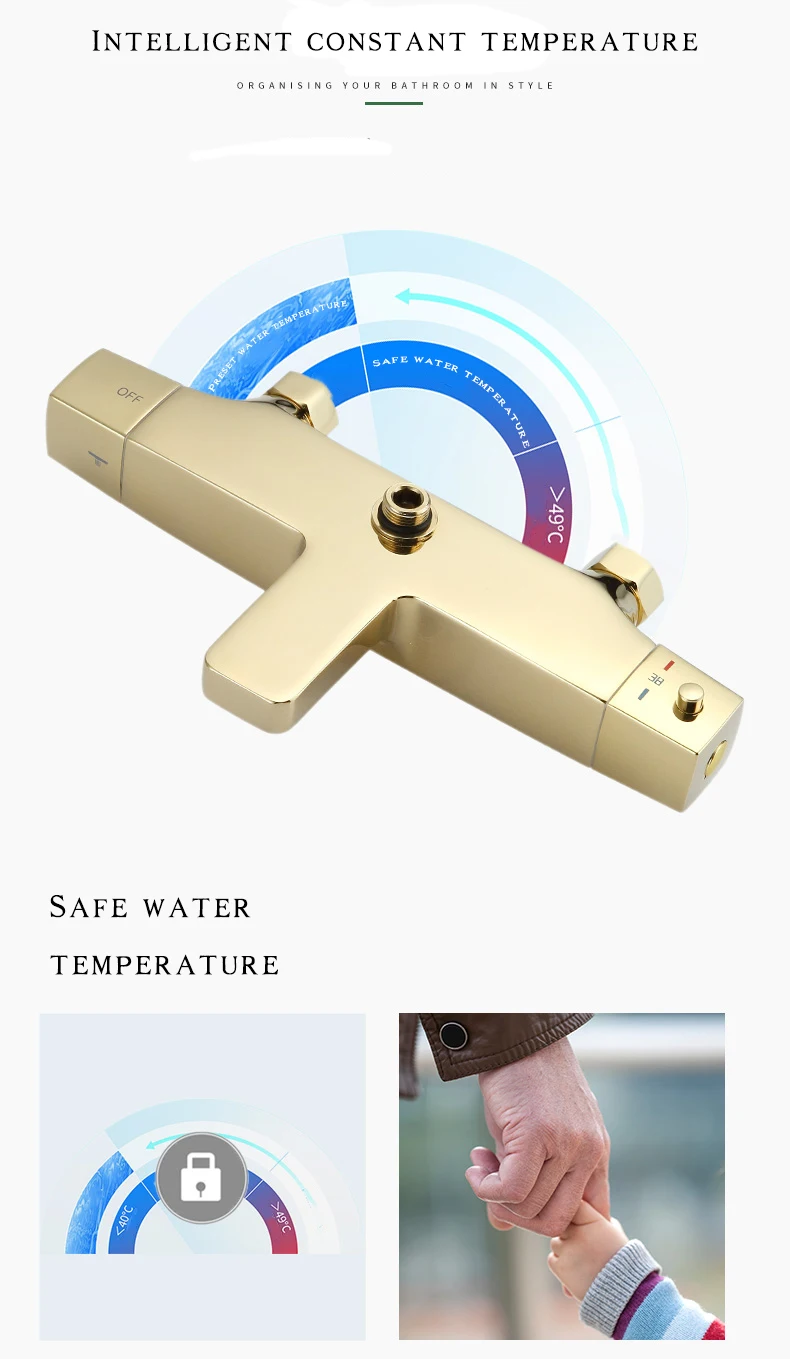 Золотистый термостатический набор для душа Водопад, смеситель для горячей и холодной воды, термостатический смеситель для ванны