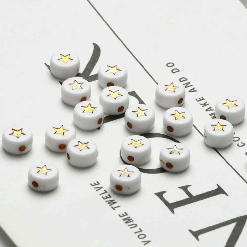 100 шт. с аппликацией в виде Золотой Звезды белые акриловые пластиковые круглые бусины Свободные Spacer Бусины для изготовления ювелирных изделий Diy браслет ручной работы ожерелье 4x7mm