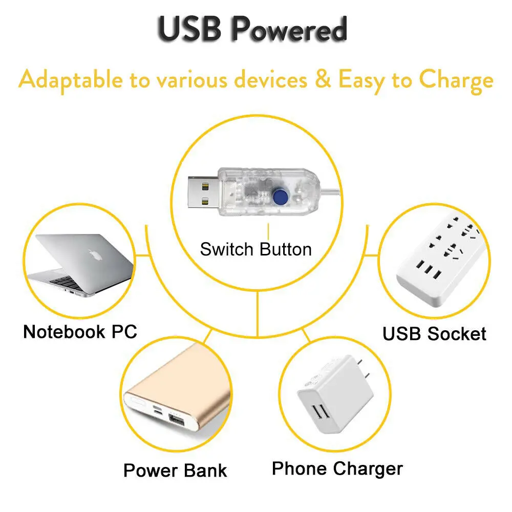 -Питание USB ed, безопасно и не нужно для внешнего электропитания -Функция с гибкой, легко корректируемой, гибкой медной проволокой, вы можете сделать своими руками свет в любой форме вам нравится! -Светильник-вес, просто положите его на растения, рождественскую елку или стол, не беспокоясь -Изготовлен из высококачественного материала, не производит тепло и долговечен. -Медный провод является водонепроницаемым, поместите его в любое место, которое вам нравится (но usb-порт не является водонепроницаемым, пожалуйста, держите его подальше от воды и сырости.) -Только статический светильник. Абсолютно новый, отличное качество. Низкое энергопотребление -Потрясающие для рождества, вечерние, барбекю, свадьбы или любых других Праздничных Украшений -Океаны маленьких звезд мерцают, мигают и волшебно меняются