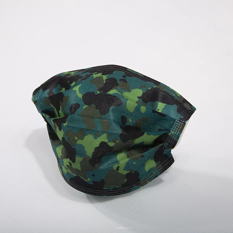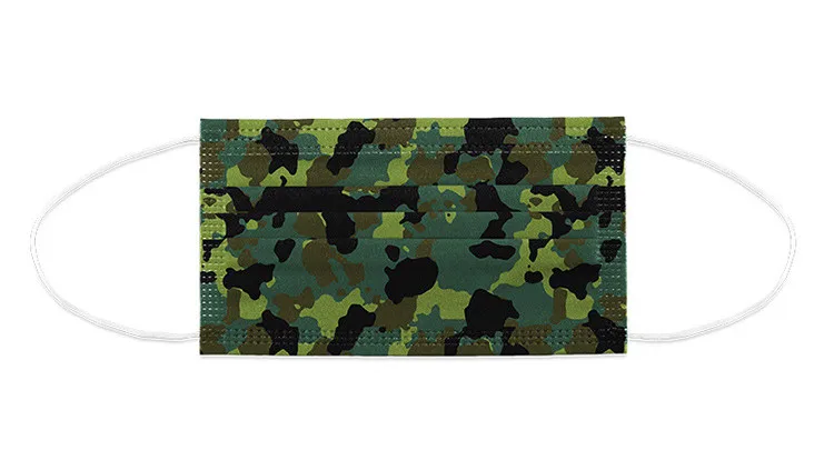 Маска для лица одноразовая для взрослых, Военная Зеленая камуфляжная принтиновая 3-слойная дышащая Пыленепроницаемая, 102050 шт.