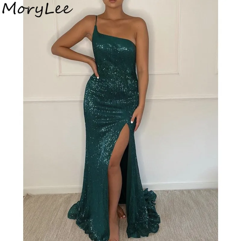 Выпускные платья на одно плечо в пол с Боковым Разрезом и блестками платье-Русалка для выпускного вечера с молнией сзади платья для вечеринки