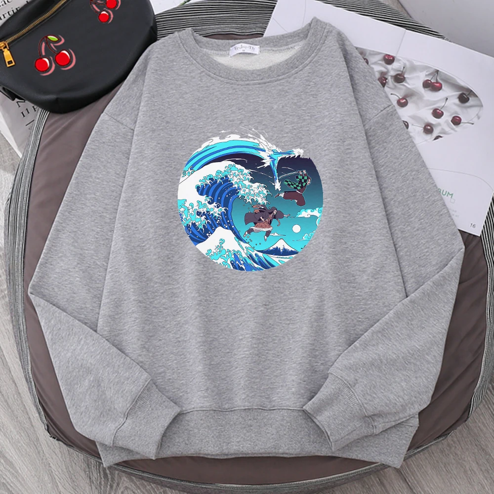 Демон Slayer Япония Аниме дыхание Великой волны Осень Зима Новинка унисекс Толстовка толстовки мужские модные пуловеры черные толстовки