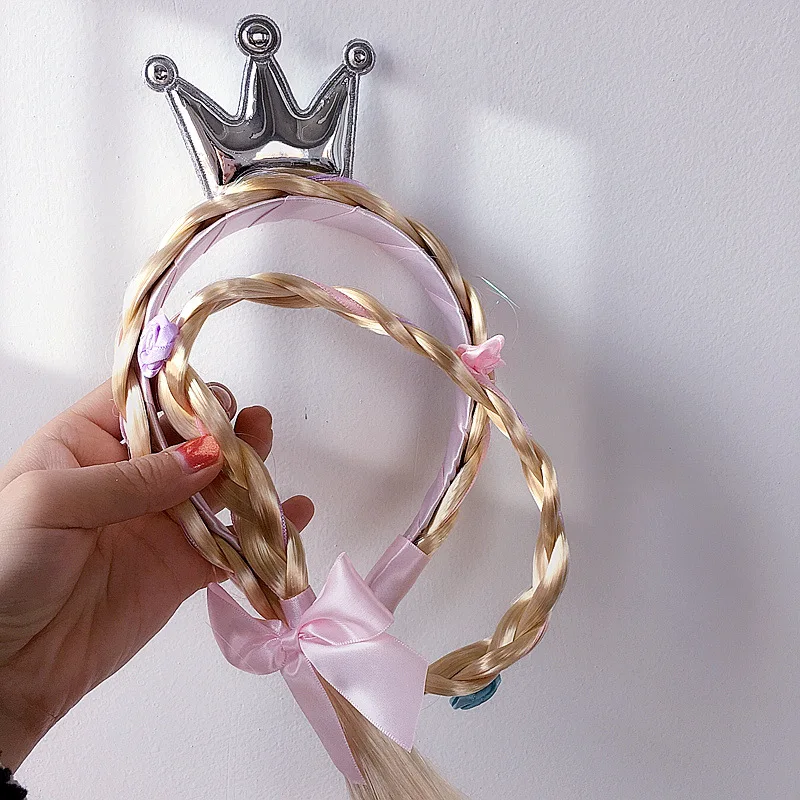 12 видов стилей для детей, девочек, блонд, косплей, плетеная тесьма, запутанная Рапунцель, принцесса, повязка на голову, аксессуары для волос, парик для девочек, головной убор