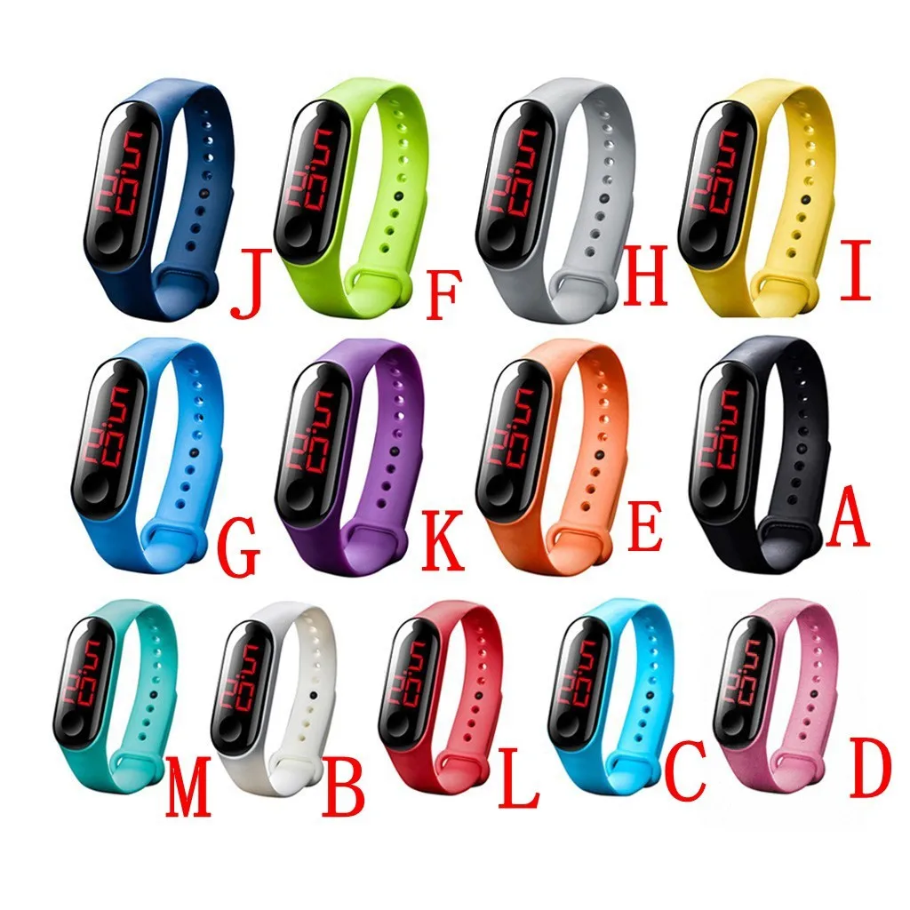 M3 детские часы сплошной цвет регулируемый ремешок светодиодные циф...