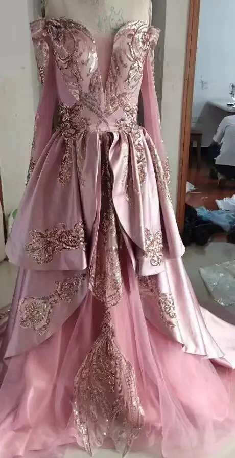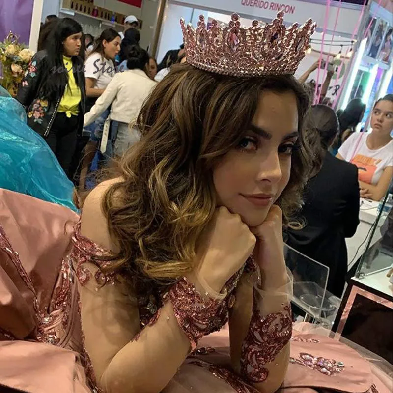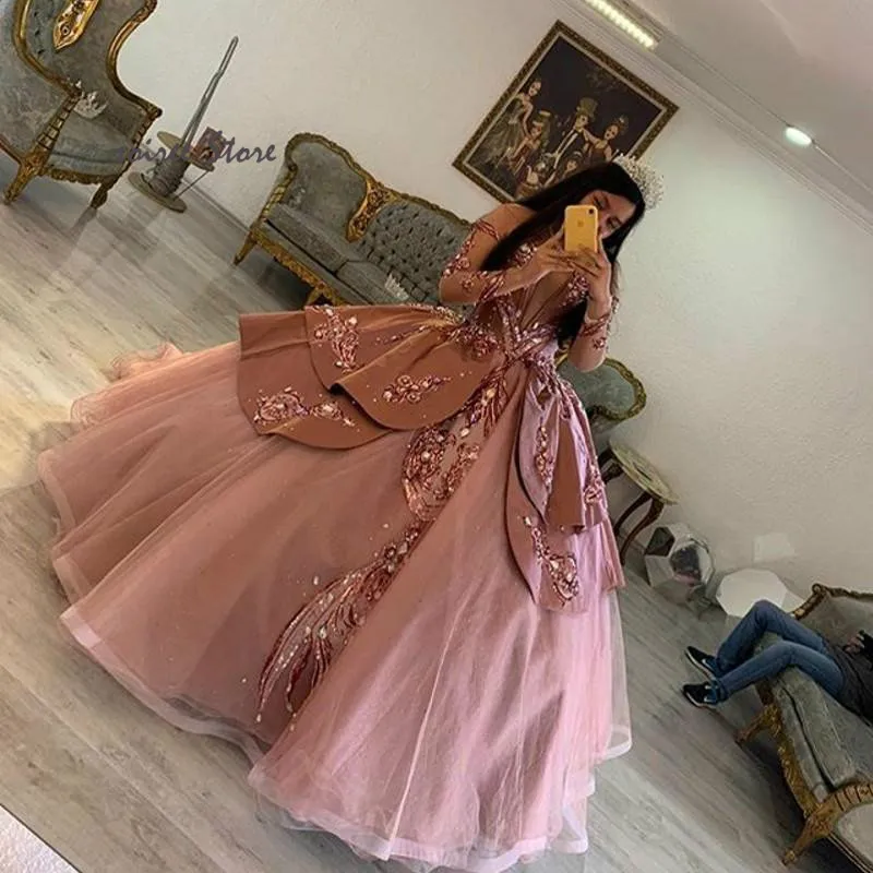 Пыльное розовое платье принцессы Quinceanera 2020 с розовым золотом блестками с длинным рукавом милый 16 пышный наряд платья 15 лет