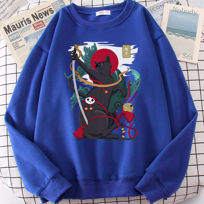 Толстовки Ukiyoe с японским котом, мультяшный Кот, мужские толстовк...