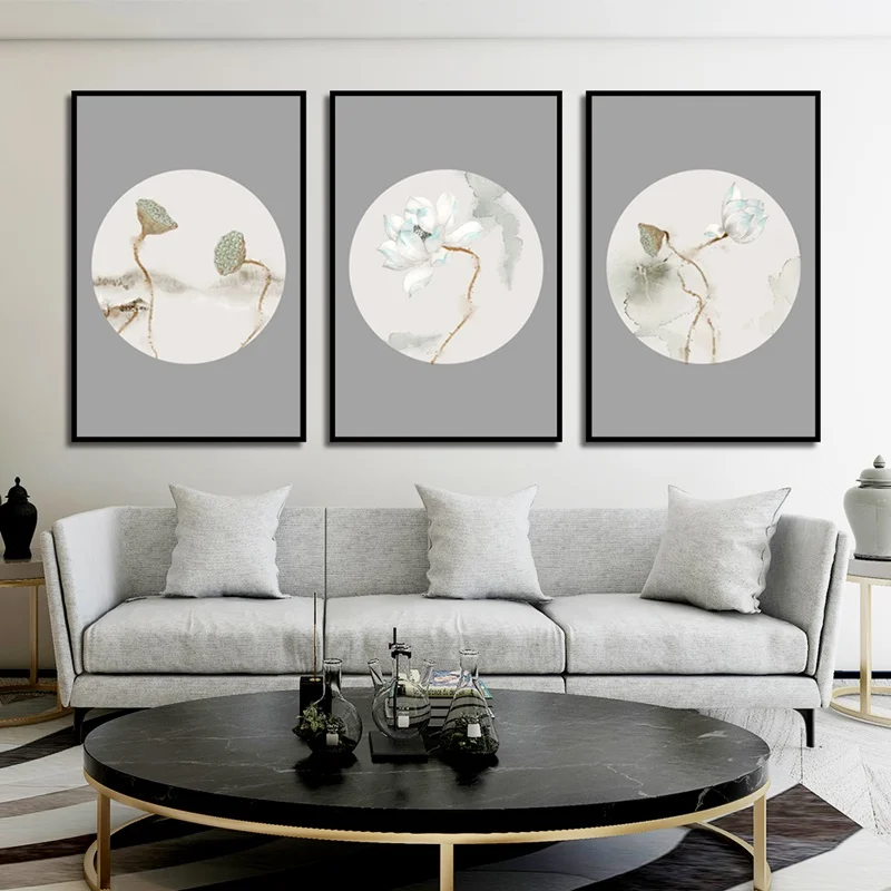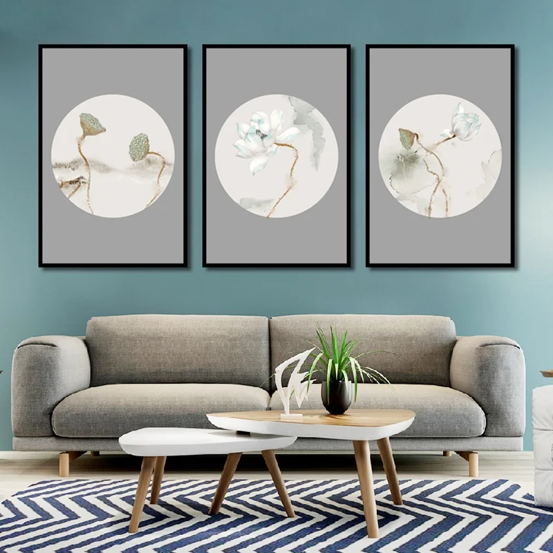 Светлые цветы лотоса в минималистском стиле, семена зеленого лотоса, Картина на холсте, плакаты и принты, настенные картины для декора гостиной