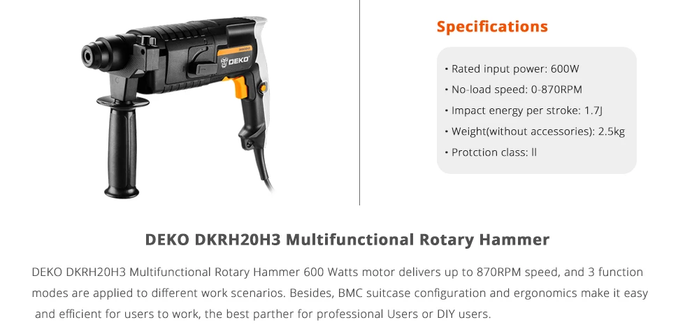 Многофункциональный перфоратор DEKO DKRH20H3, электрическая Ударная...
