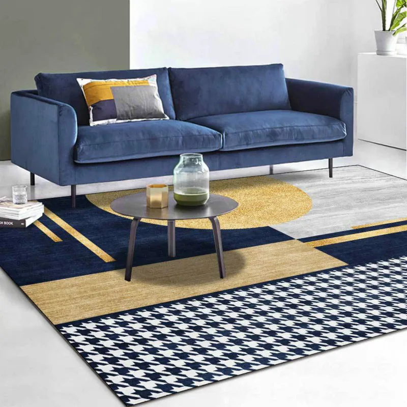 Модный современный золотой темно-синий мраморный геометрический сшивание гостиной прикроватный коврик для спальни коврик на заказ