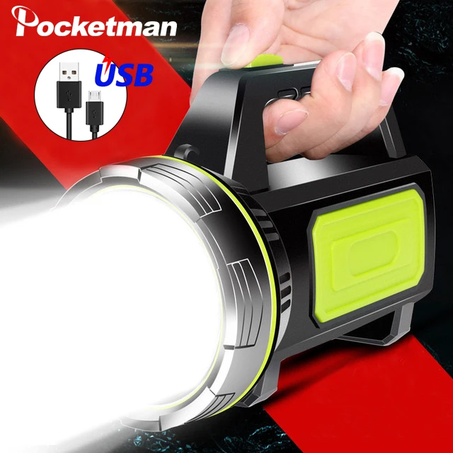 Мощный светодиодный фонарик, портативный прожектор, перезаряжаемый прожектор, диапазон 500 м, охотничий фонарь, фонарик