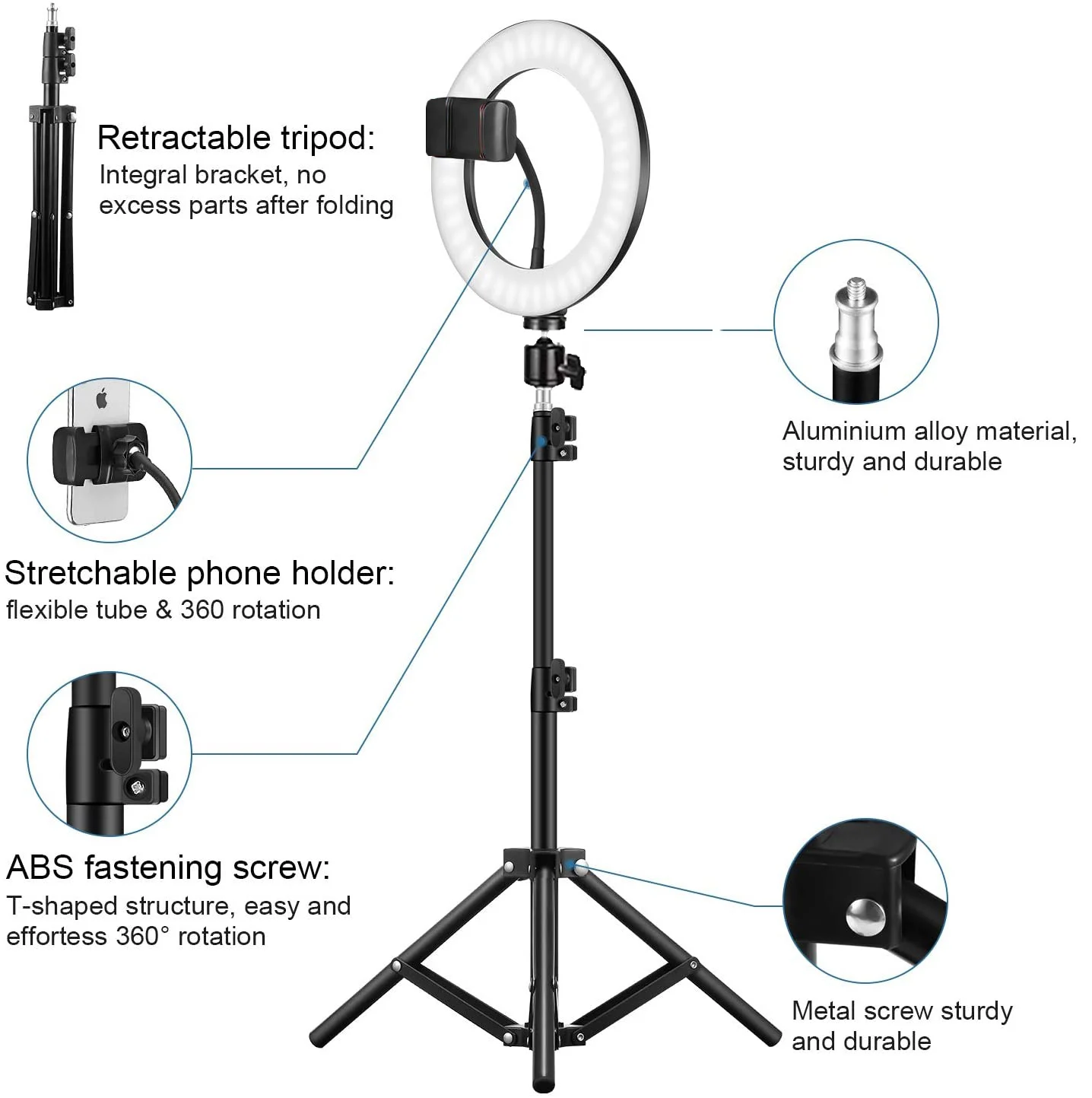 Светодиодное освещение для фотосъемки с подставкой для штатива для фотостудии светодиодная кольцевая лампа для селфи лампа для телефона видео TikTok Youtube Работает хорошо. Это очень выгодно.