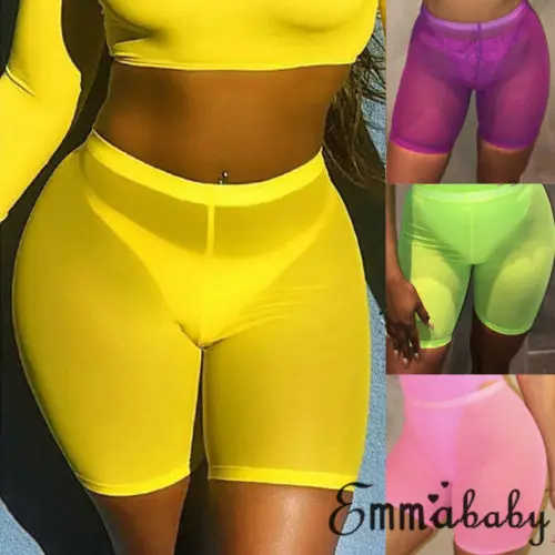 Женские сексуальные прозрачные сетчатые летние горячие короткие брюки, повседневные шорты, пляжные бикини с высокой талией, короткие спортивные брюки