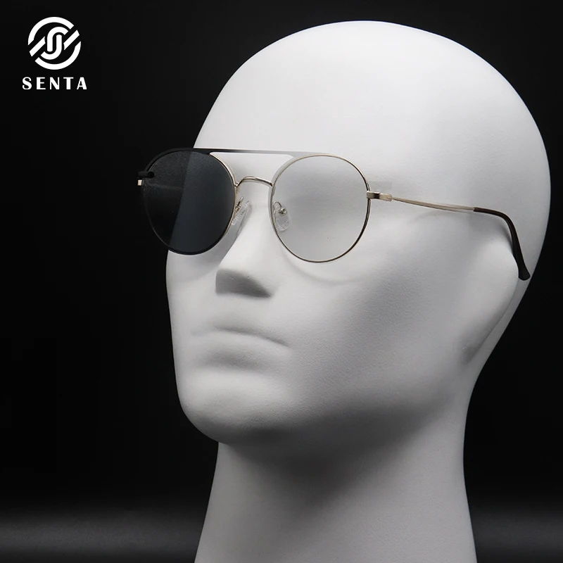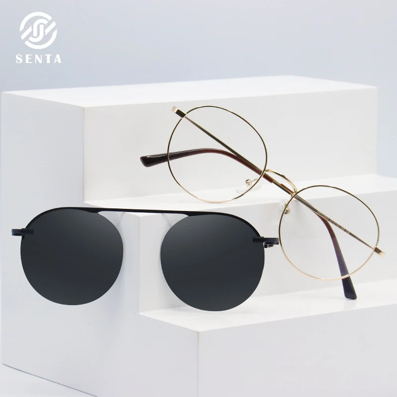 Классические круглые металлические оправы для очков Senta по рецепту в стиле ретро, Мужские поляризационные очки 2 в 1 с магнитом и клипсой