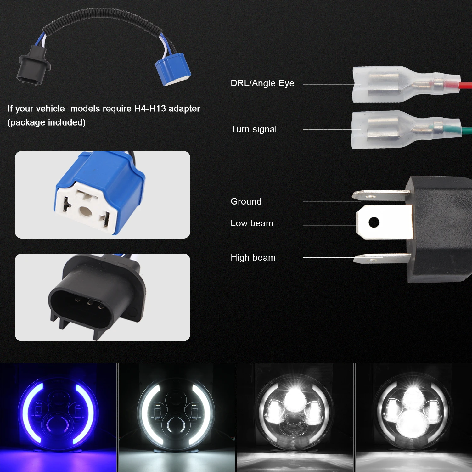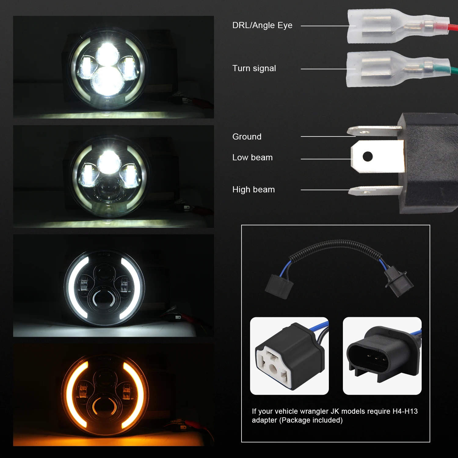 1 шт./2 шт. 7 дюймовый круглый светодиодный фары для автомобиля+1 шт/2 шт H4 и H13 конверсионная линия(В зависимости от вашего выбора)