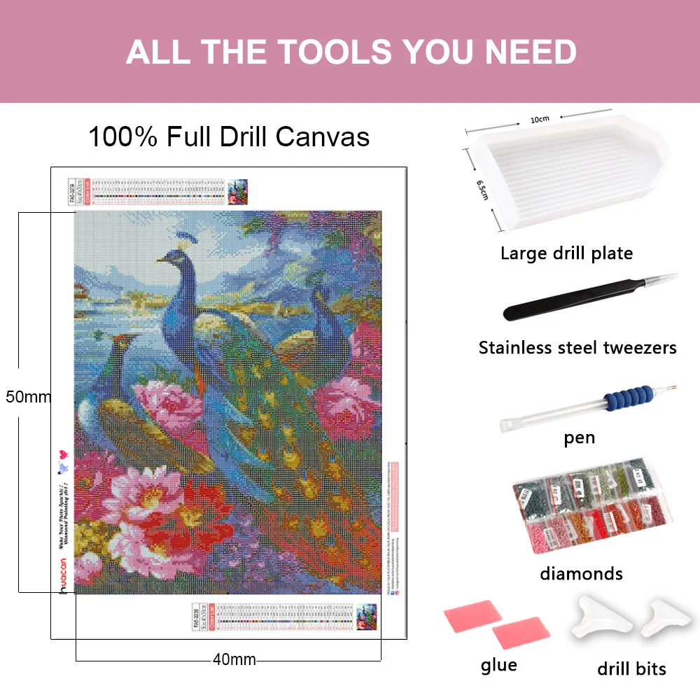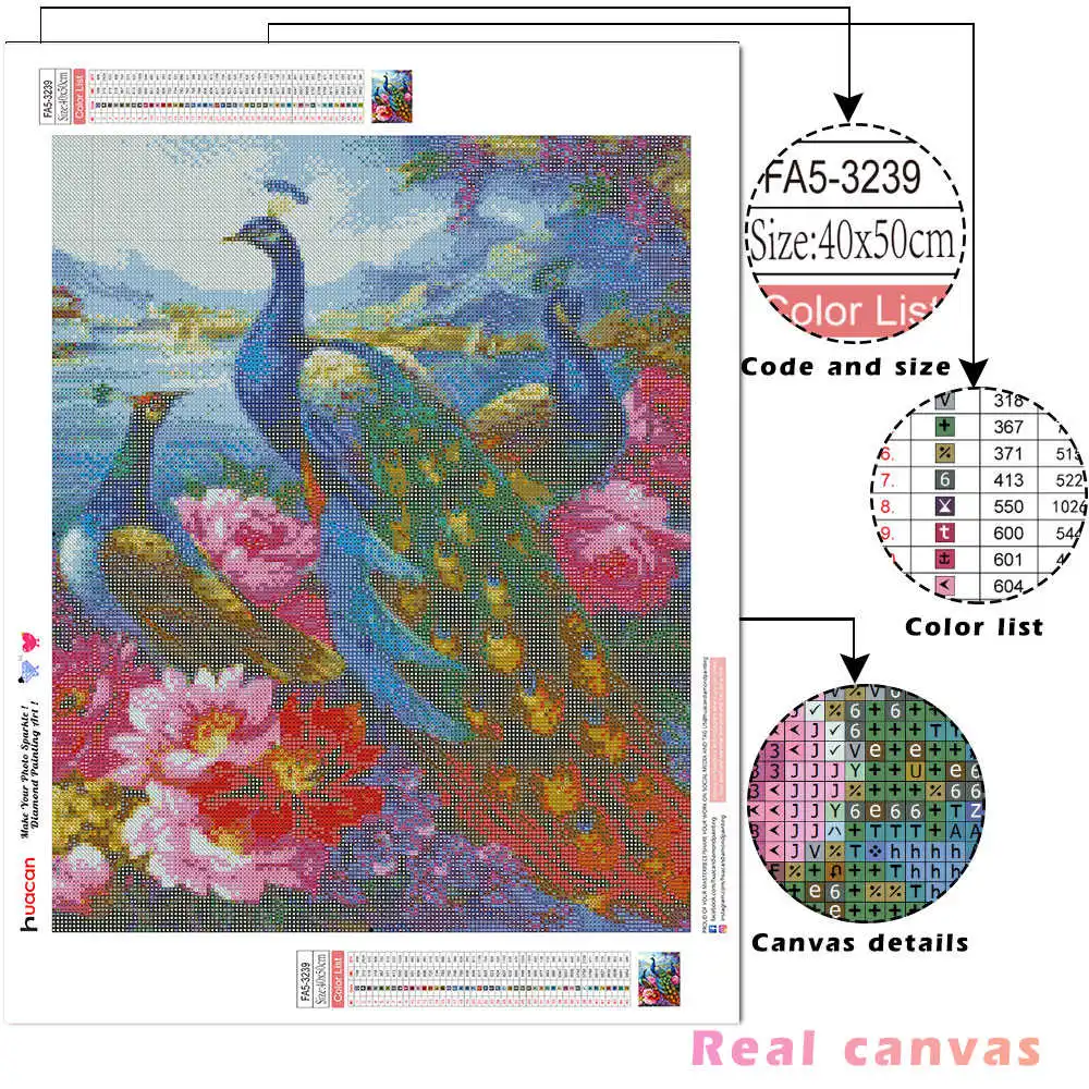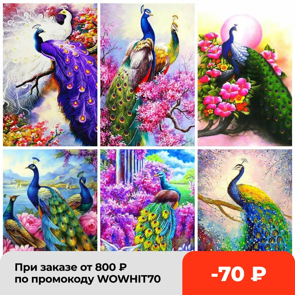 HUACAN Алмазная мозаика павлин вышивка крестом Алмазная вышивка животные картина стразами Полные комплекты домашнего декора