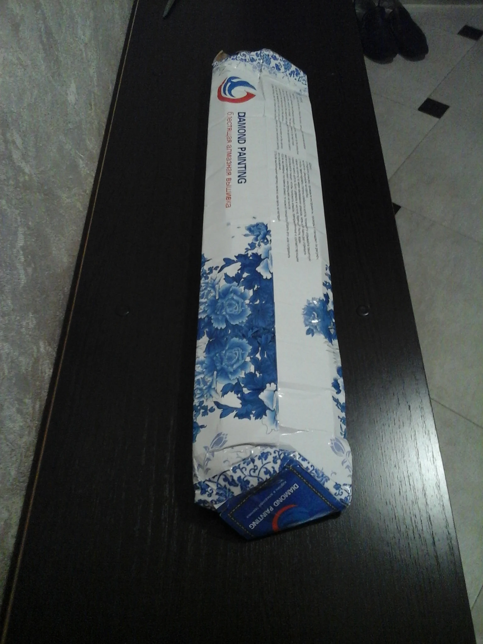 Картина долго шла. Упаковка отличная, все по описанию, ещё не клеили.