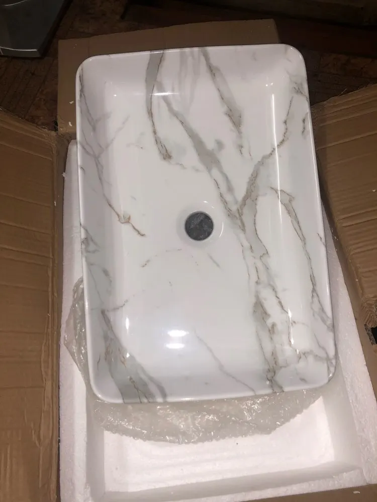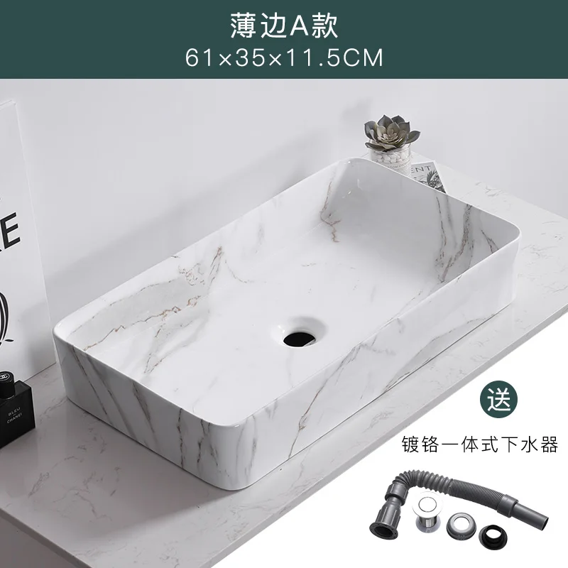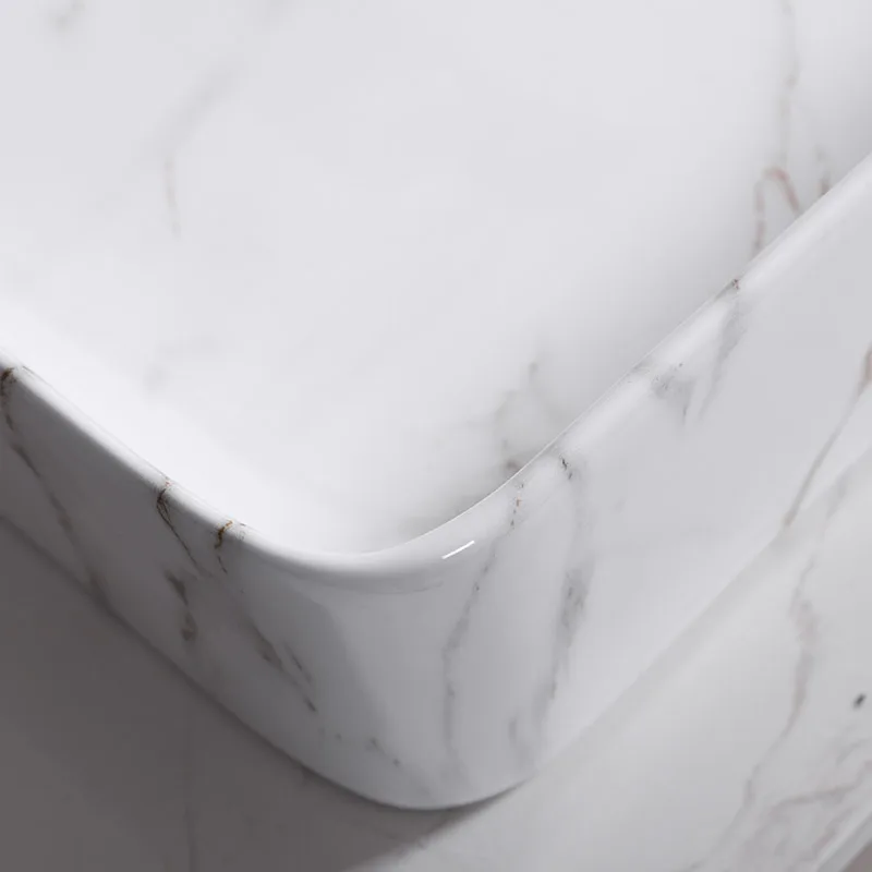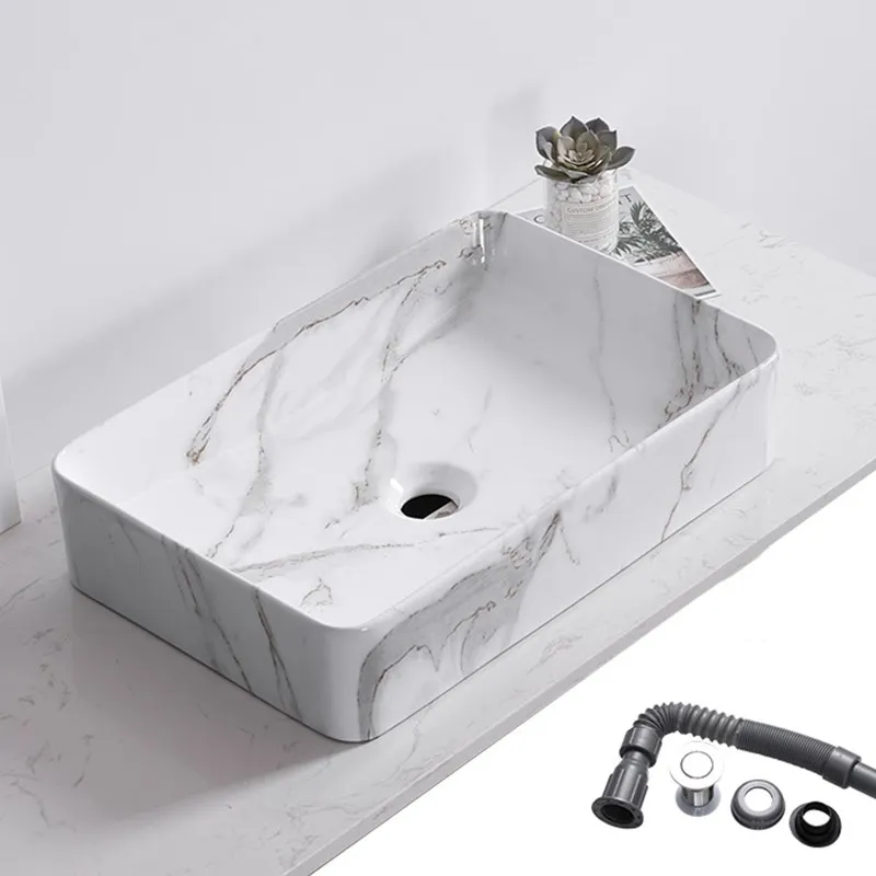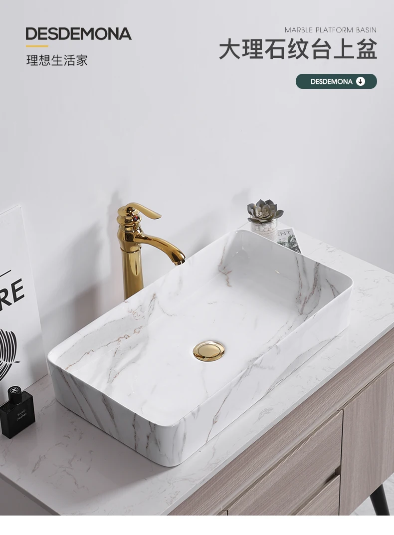 Керамическая раковина с мраморным узором, умывальник над стойкой, домашняя раковина для ванной, квадратная раковина с аксессуарами