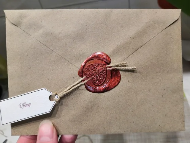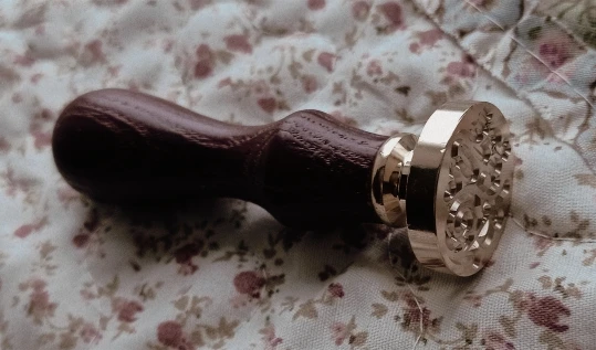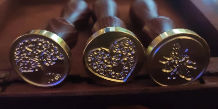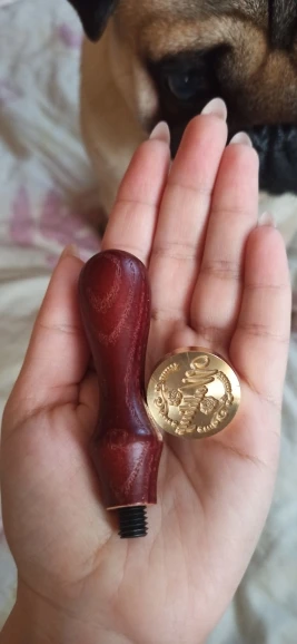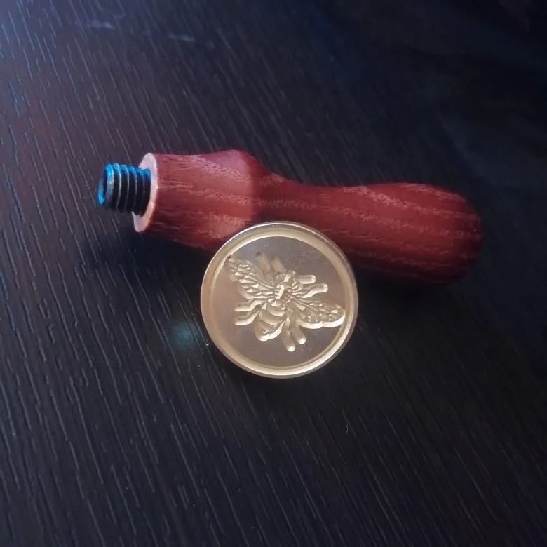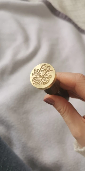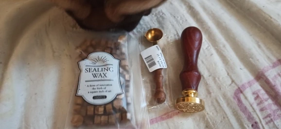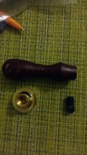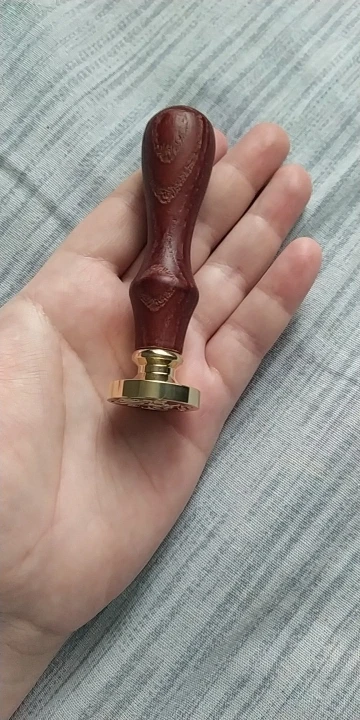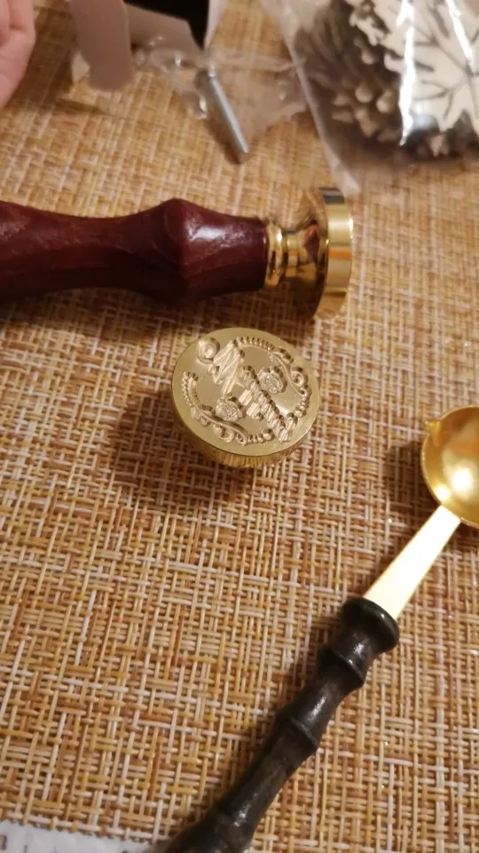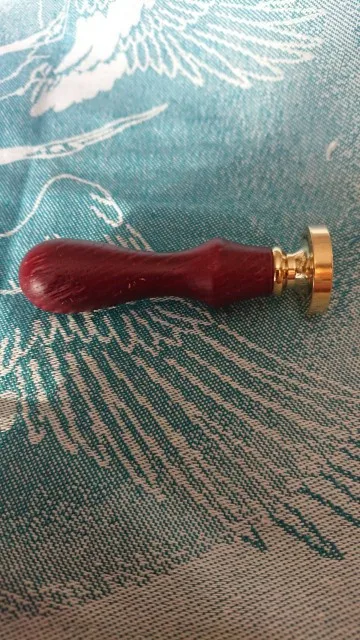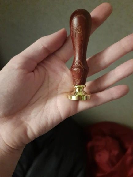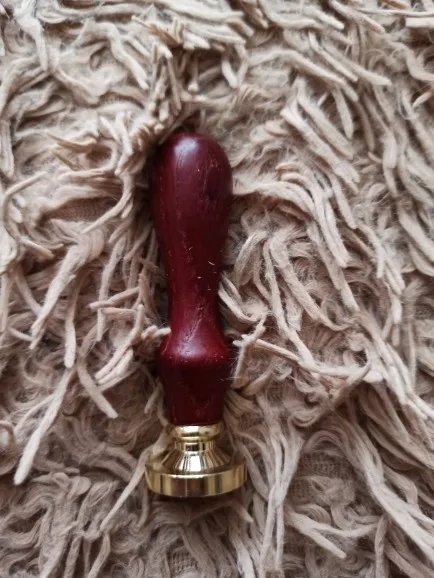 Деревянная ручка, и большая по размеру печать, которая откручивается от ручки и её можно заменить на другую (если она у вас есть). Я сделала печать из обычной свечки, так как сургуч ещё не пришёл. Но даже из свечки получается довольно симпатично:3