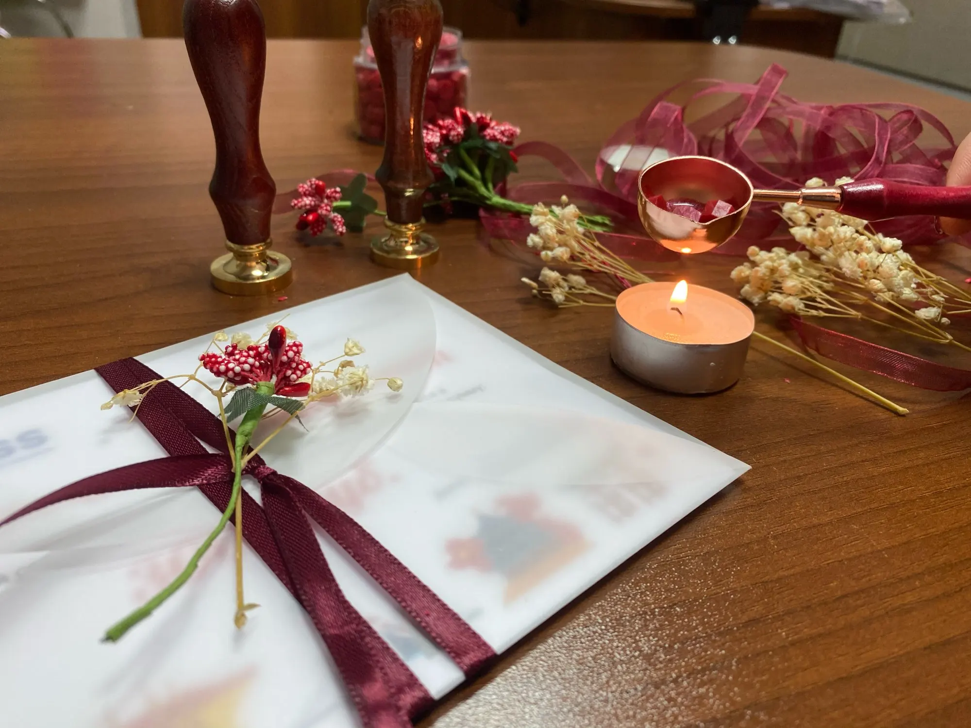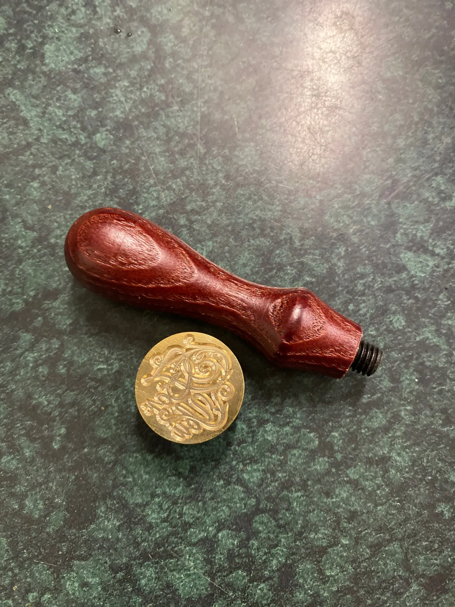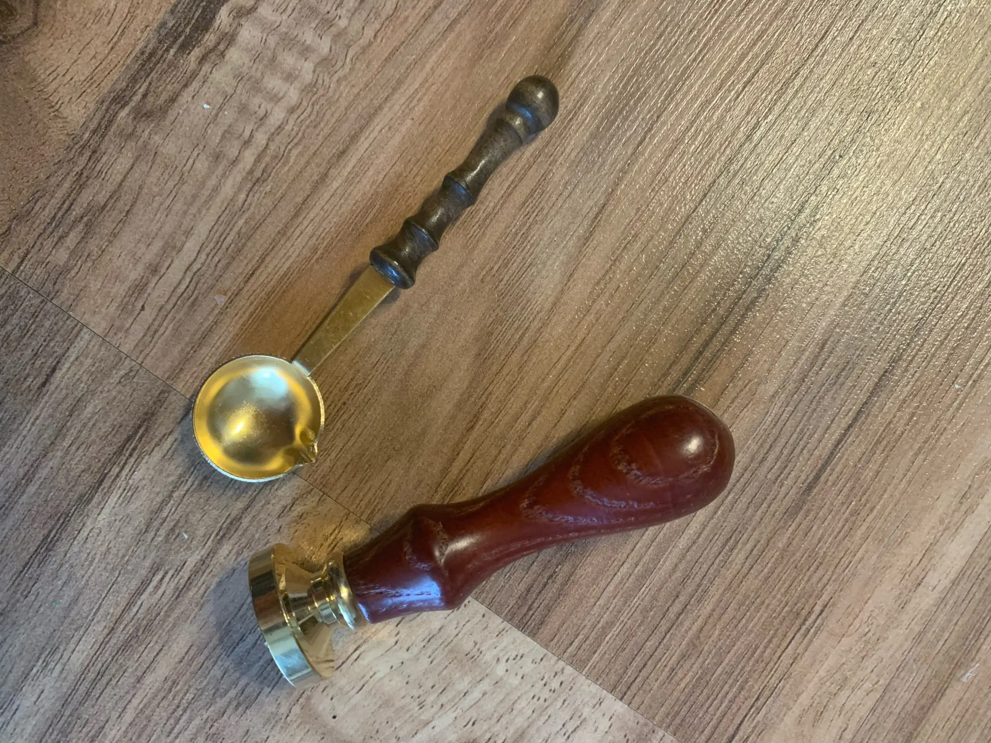 Деревянная ручка, и большая по размеру печать, которая откручивается от ручки и её можно заменить на другую (если она у вас есть). Я сделала печать из обычной свечки, так как сургуч ещё не пришёл. Но даже из свечки получается довольно симпатично:3