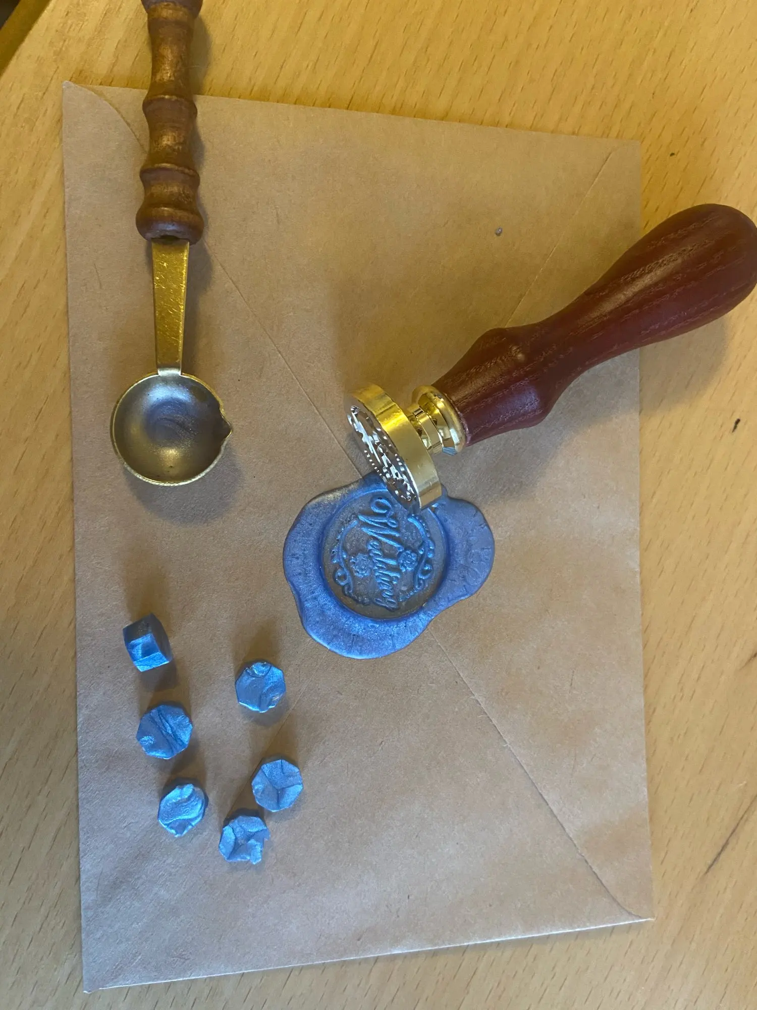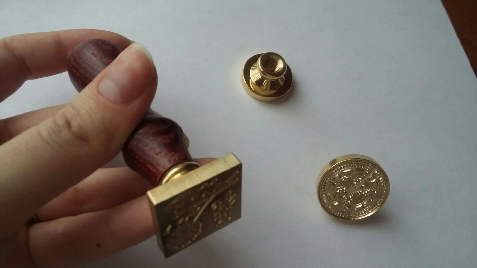 Заказала 12.01 пришло 26.01 в Нижегородскую область в объединённой посылке. Печать пришла в разобранном виде, ручка выкручивается в головку штампа. Ложка для плавления небольшая, как раз для бусин, которые продаются. Печать тяжеленькая, думаю проблем с ней не будет. Ложка в выемке имеет небольшое потемнение. С продавцом не общалась. Спасибо продавцу.