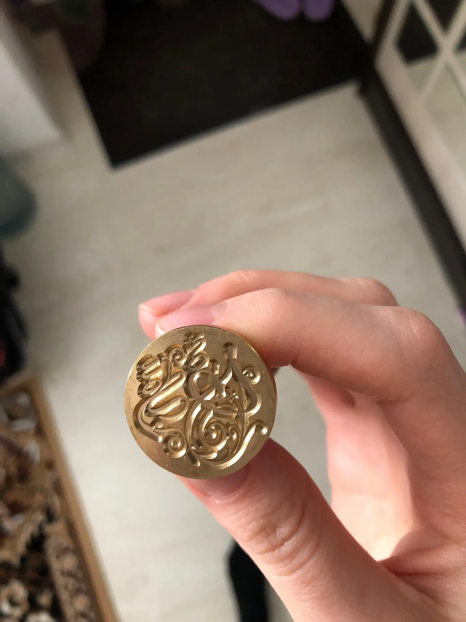 Замовляла разом з пластиком для відтисків. Продавець відправив усе дуже швидко. Проте сама печатка прийшла на 2 тижні пізніше. Все ціле, упаковано в пупирку. Розмір видно на фото. Виглядає стильно і красиво. Відтиски зробила на швидкоруч, але результат сподобався. Хочу замовити тепер ще інші види. Рекомендую продавця і цей товар.