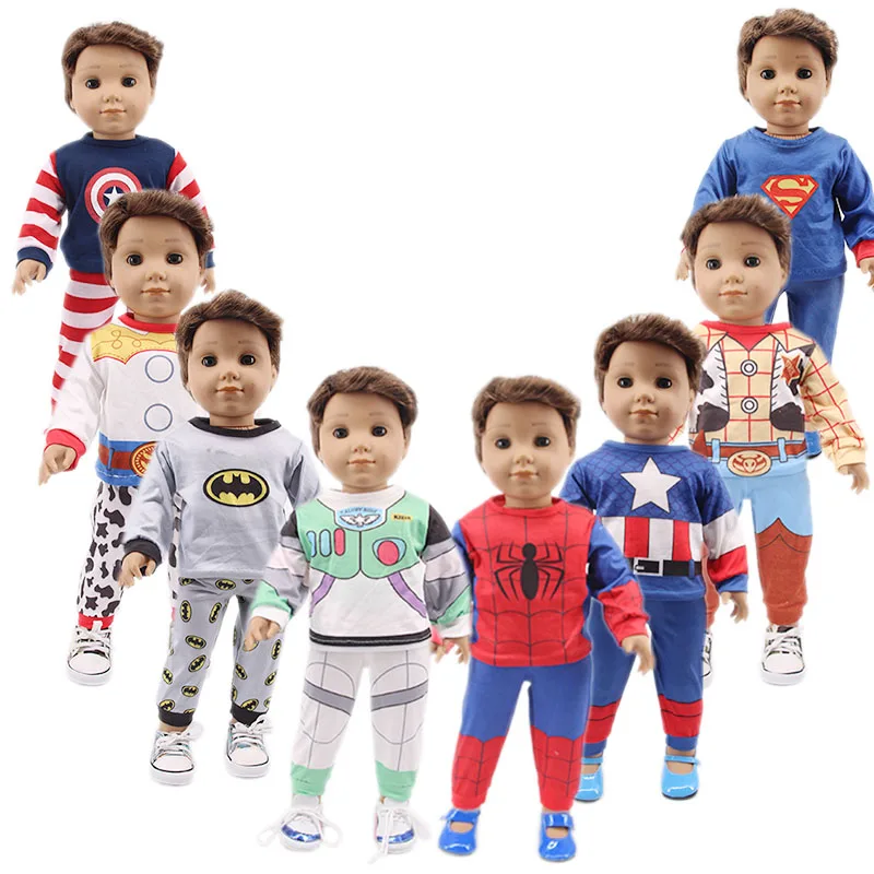 Одежда для кукол, 2 шт.компл., серия пижам супергероев, для кукол-реборнов в американском стиле, 18 дюймов, 43 см, Логан
