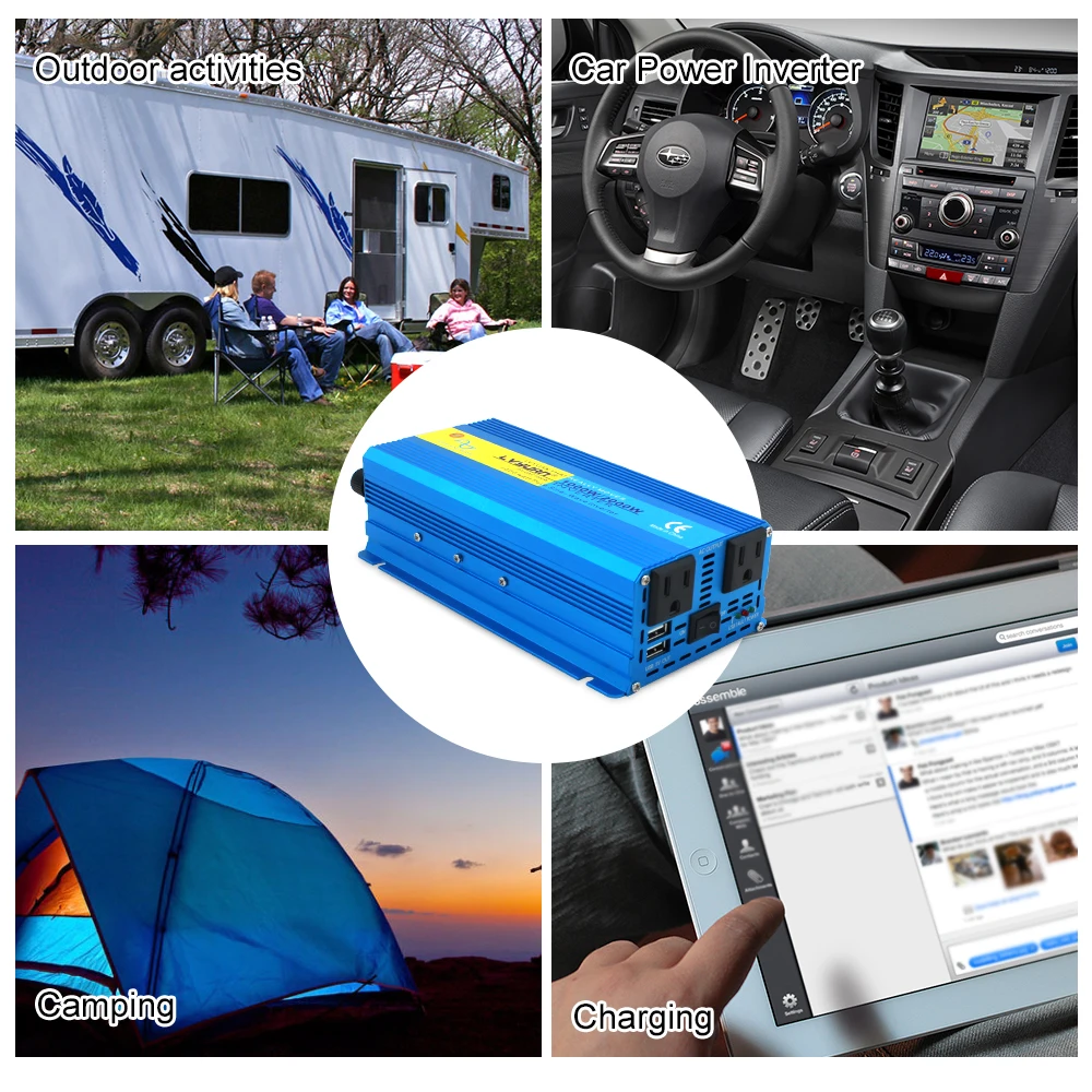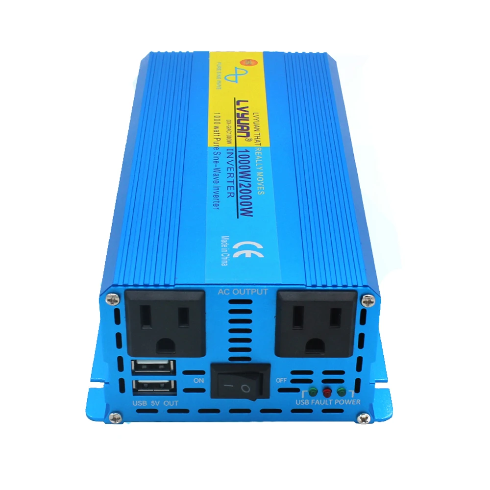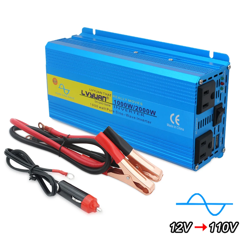 Пиковый инвертор немодулированного синусоидального сигнала, 2000 Вт, 12 В24 В переменного тока, 100 в, 110 В, 120 В, адаптер для зарядки, конвертер, Двойной выход USB, розетка стандарта США