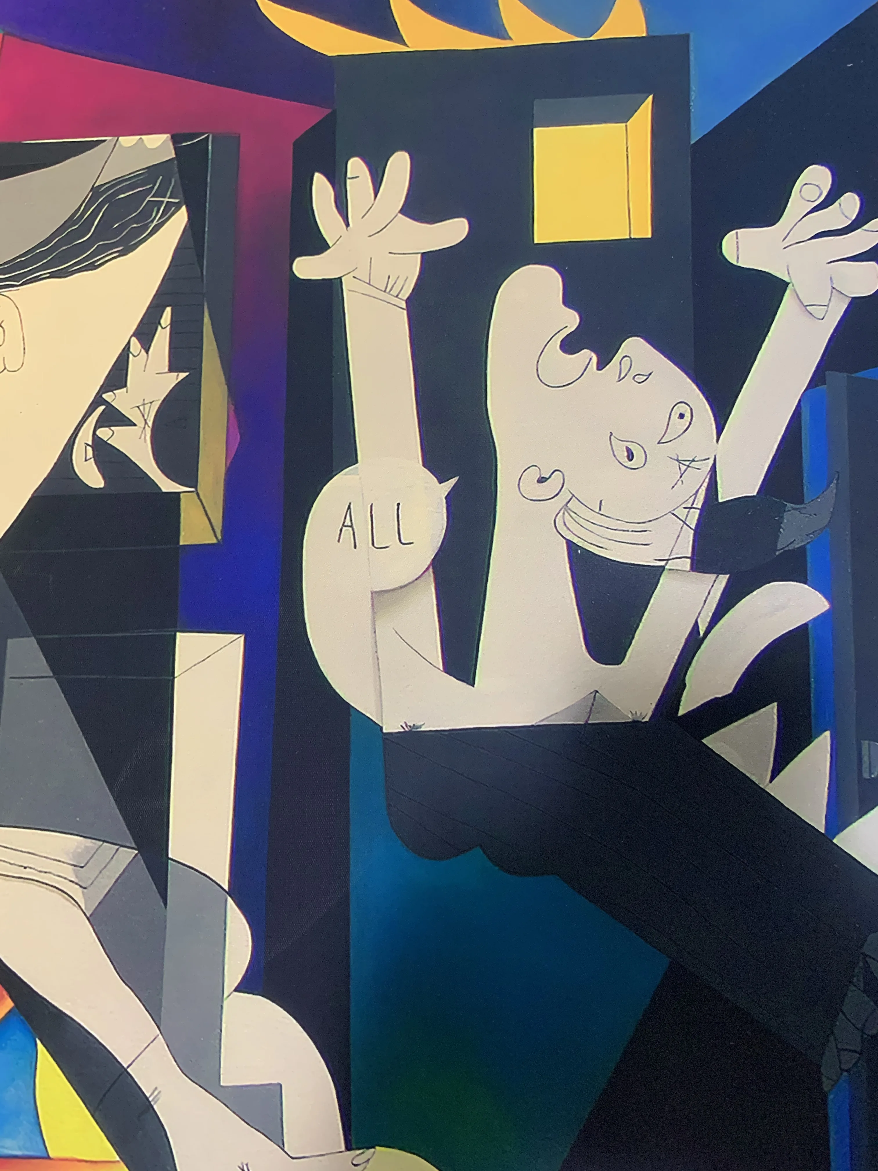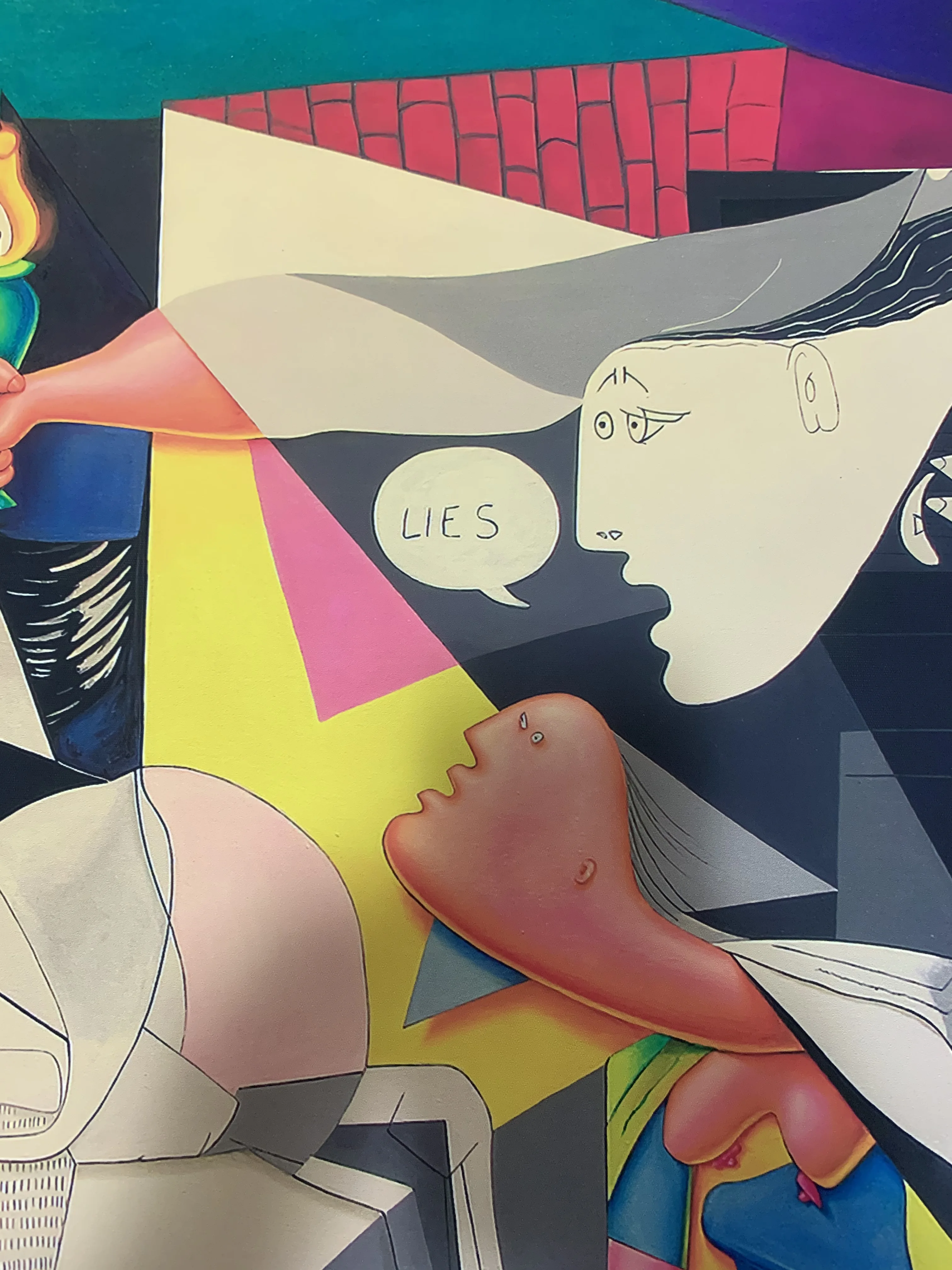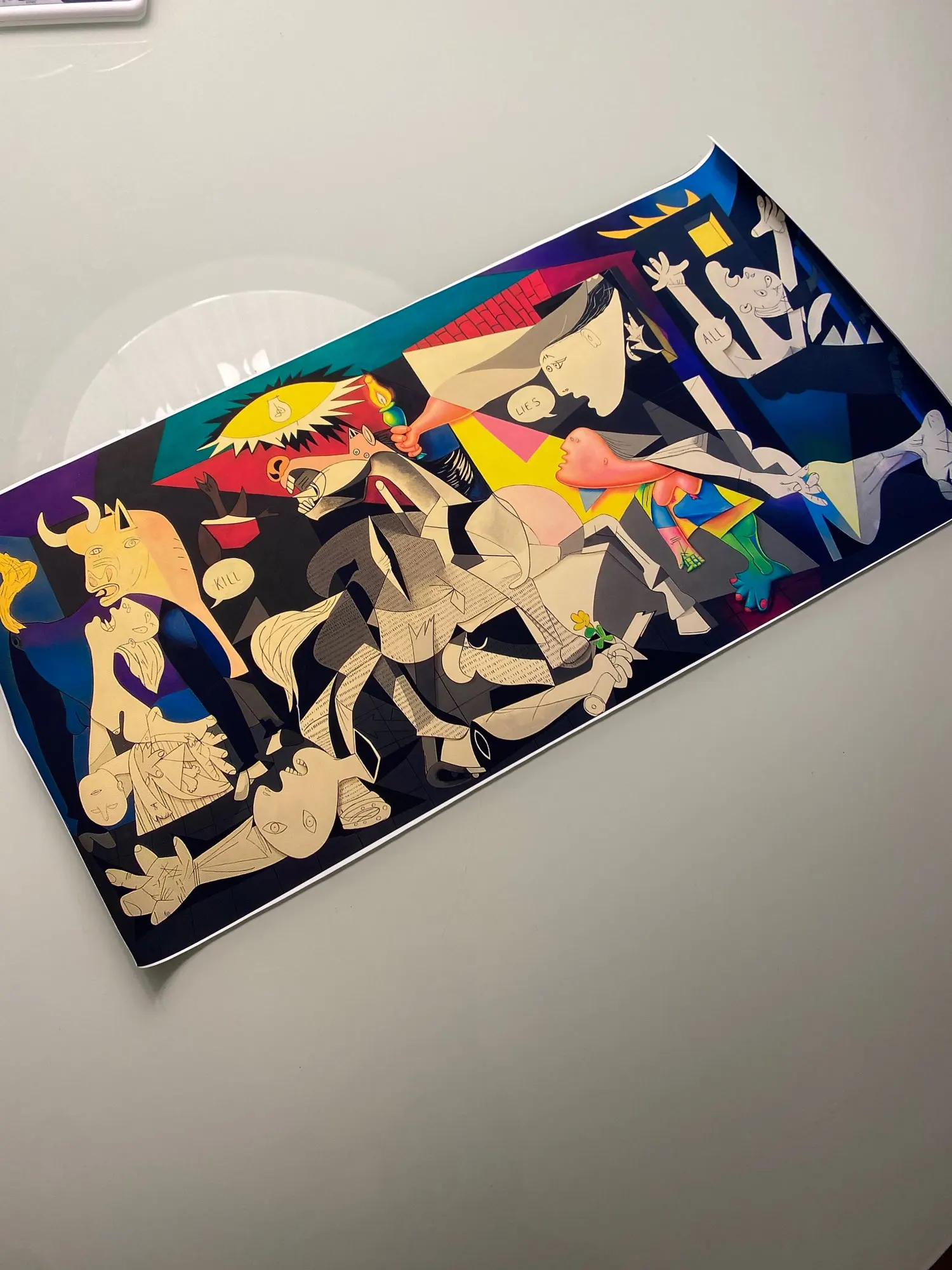 Три слова, написанные на экране-убивайте, лжите и все-это не работает. Не будет использовать оправу таким образом, что является позором. Следующая копия герника основана в Национальном музее рейны Софии в Мадрид.