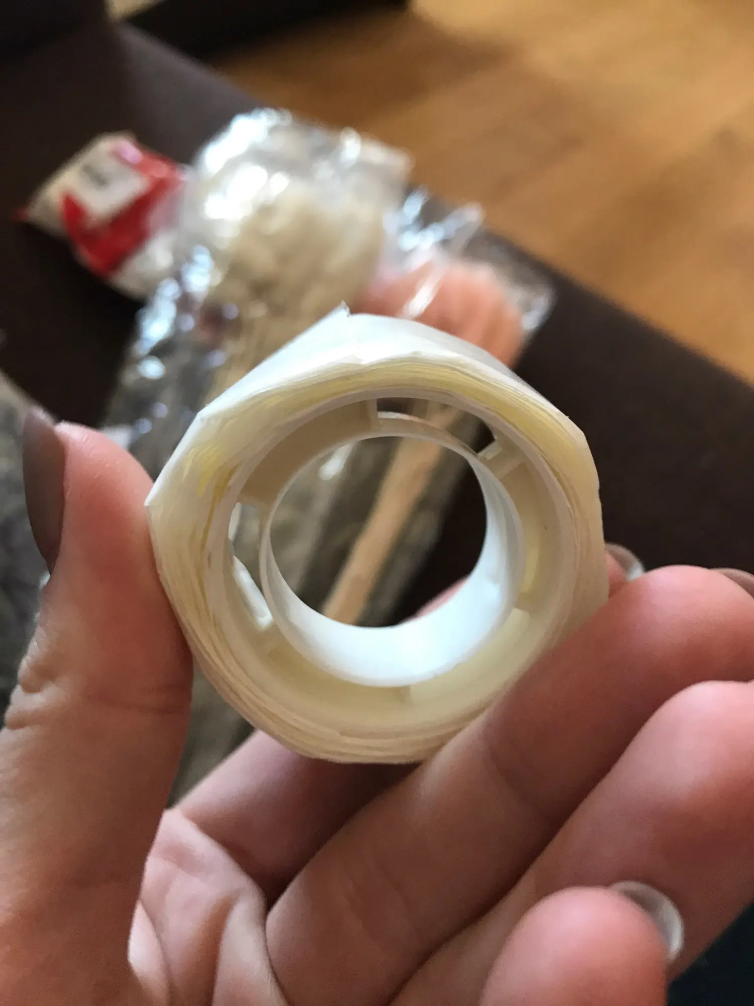 Тонкий слой липучки диаметром 0.8 см, хорошо держит лёгкие предметы, типа фотографии например.