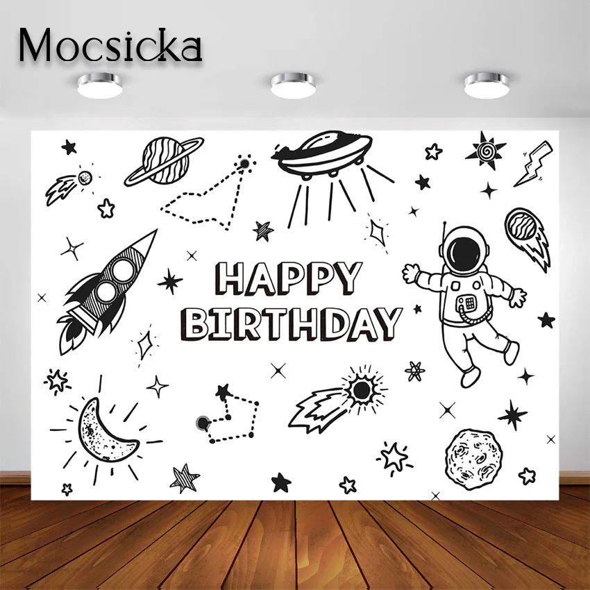 Mocsicka Космос День Рождения Вечеринка фон для детской вечеринки декорации космический астронавт День рождения баннер фон для фотосессии