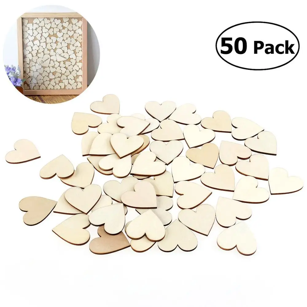 50 шт.компл. деревянные Сердца в форме сделай сам, подвесные сердца, простые поделки, оптимальный свадебный стол, рассеянный декор, деревенский деревянный Свадебный декор