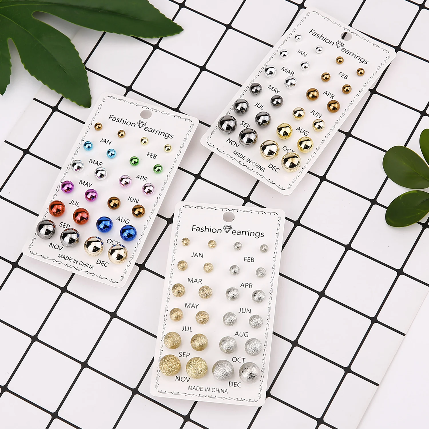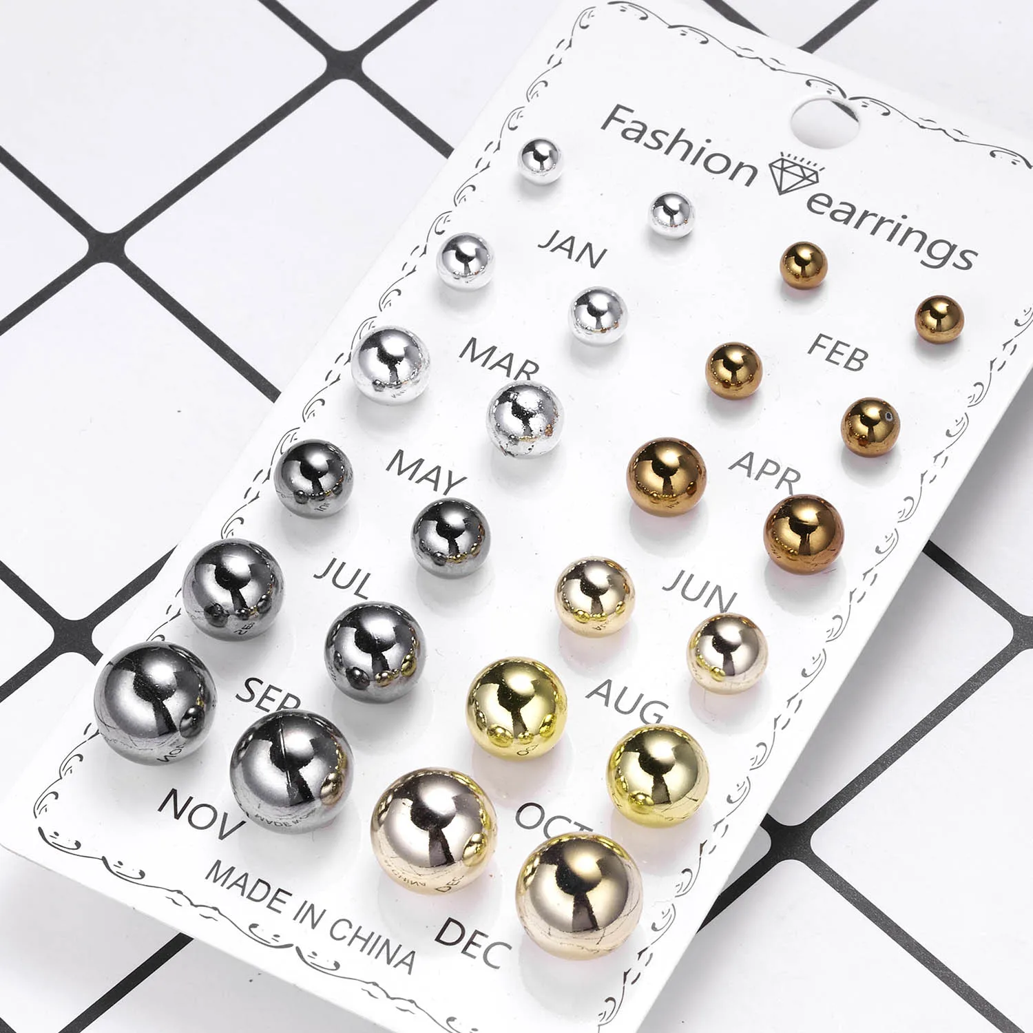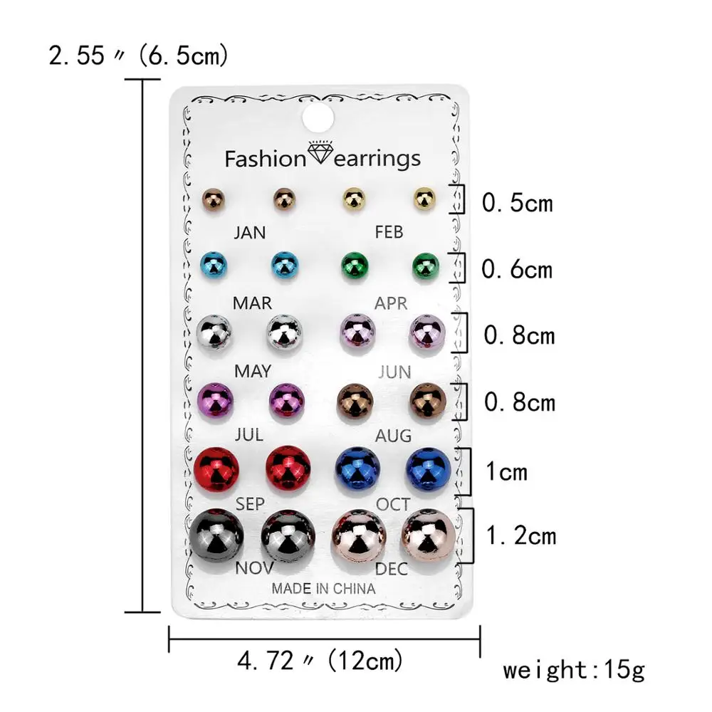 Набор серег-гвоздиков с кристаллами в виде Стразы 12 партийкомпл., комплект женских ювелирных украшений с шариками Янв-дек для пирсинга