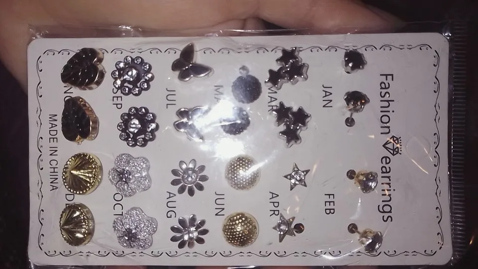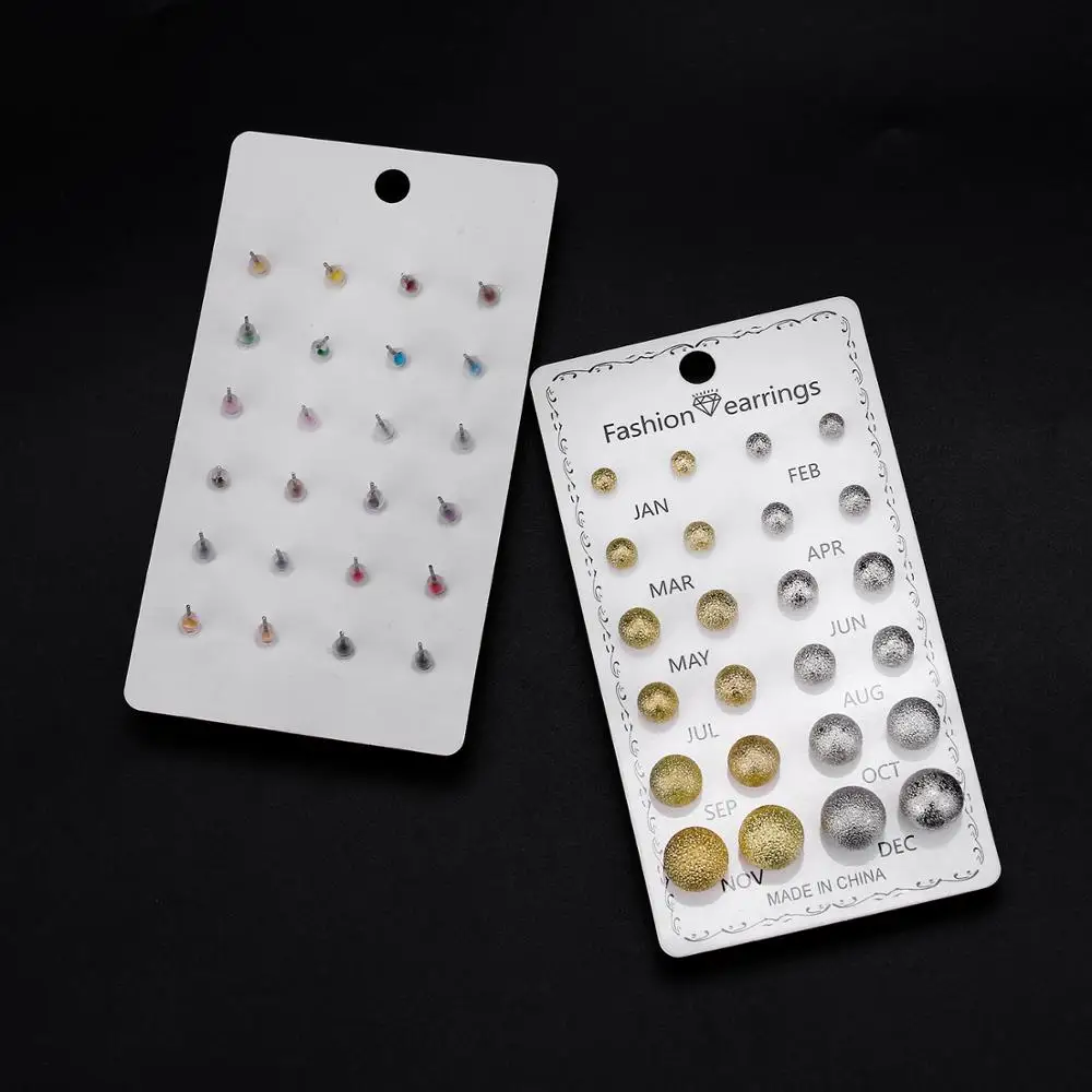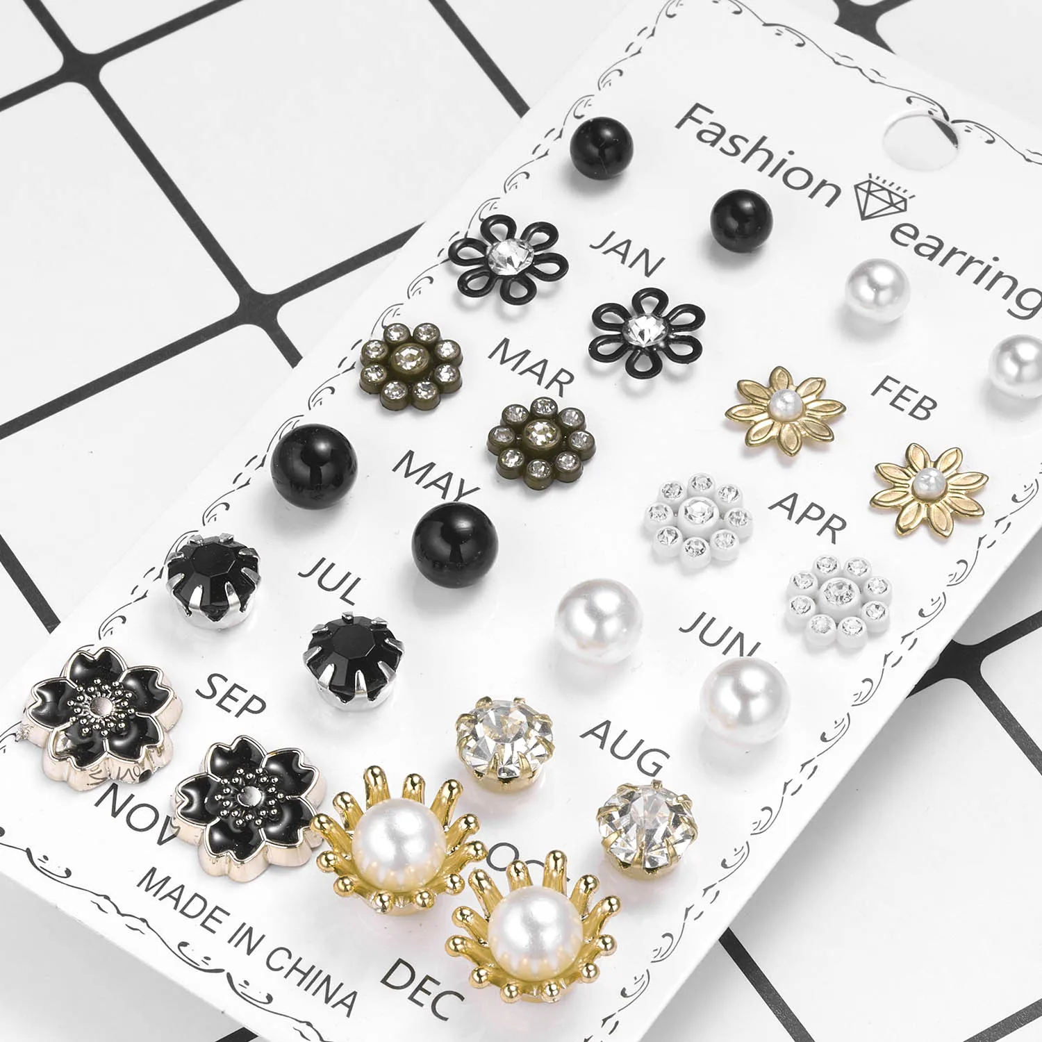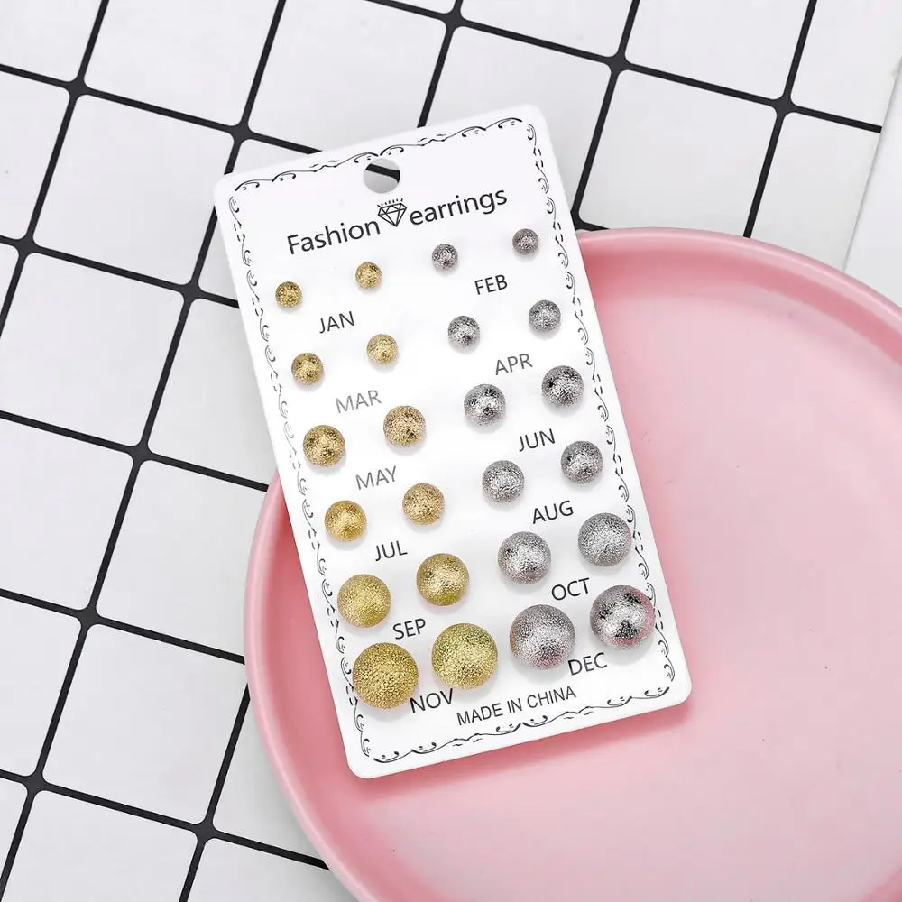 Набор серег-гвоздиков с кристаллами в виде Стразы 12 партийкомпл., комплект женских ювелирных украшений с шариками Янв-дек для пирсинга
