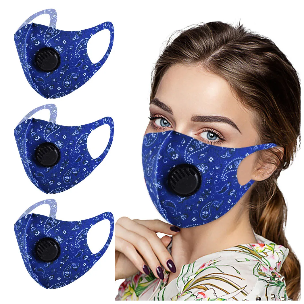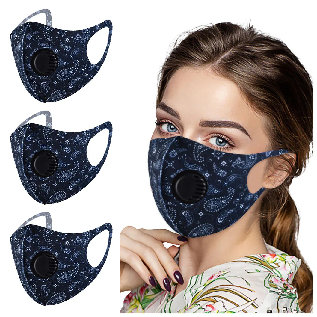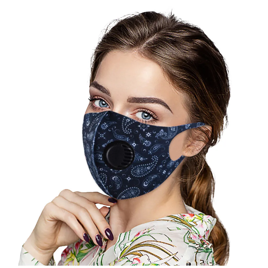 Взрослая маска для лица моющаяся многоразовая Пылезащитная наружная маска с принтом для рта с клапаном Мужская и женская дышащая маска маскарилья маски