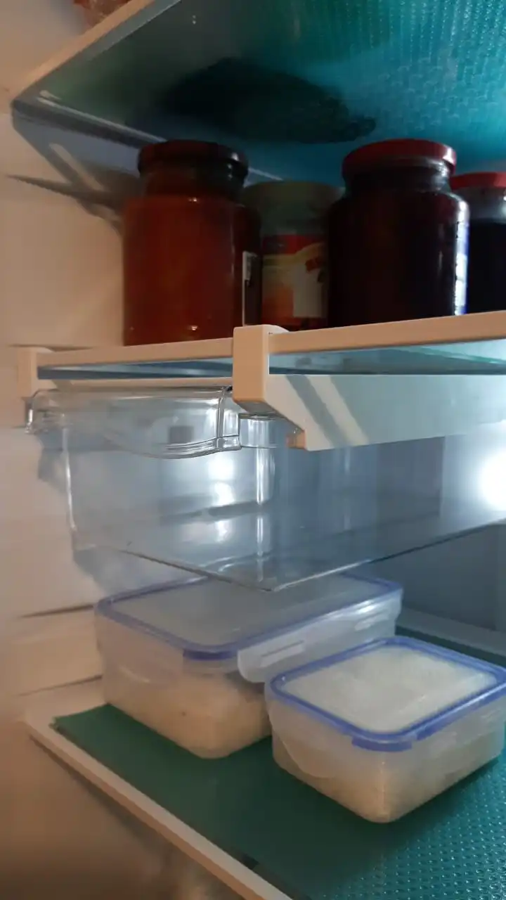Прибыл в течение 3 недель, как и ожидалось. Мне нравится! Это только половина ширины обычного холодильного шкафа и около 75% длины, но установка в течение 5 минут. Трек прикрепляется вверх дном, поэтому вам нужно отпустить защелки внутри, чтобы снять ящик. Затем Настройте его на длину оригинальной полки и зафиксируйте. Теперь положите заднюю часть ящика внутрь и наслаждайтесь. Я приложил небольшое количество ленты на 4 концах, чтобы добавить силы к нему и прикрепить к оригинальной стеклянной полке. Всего 1,5 дюйма ленты было достаточно. Я думаю, что закажу еще 2 и поставлю их рядом, чтобы увеличить пространство на холодильнике. У большинства холодильников есть карманы посередине, поэтому идеальная идея. Удачи!