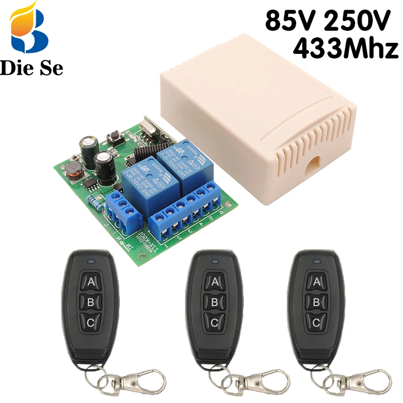 Универсальный Радиочастотный пульт дистанционного управления для гаражные Дверные Шторы, электрический дверной приемник и контроллер, 433 МГц, 85 в, 250 В переменного тока, 2 канала, 10 А