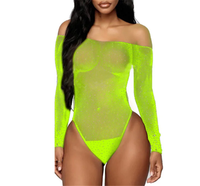 2021 женское бикини сексуальное Сетчатое боди стразы с длинным рука...