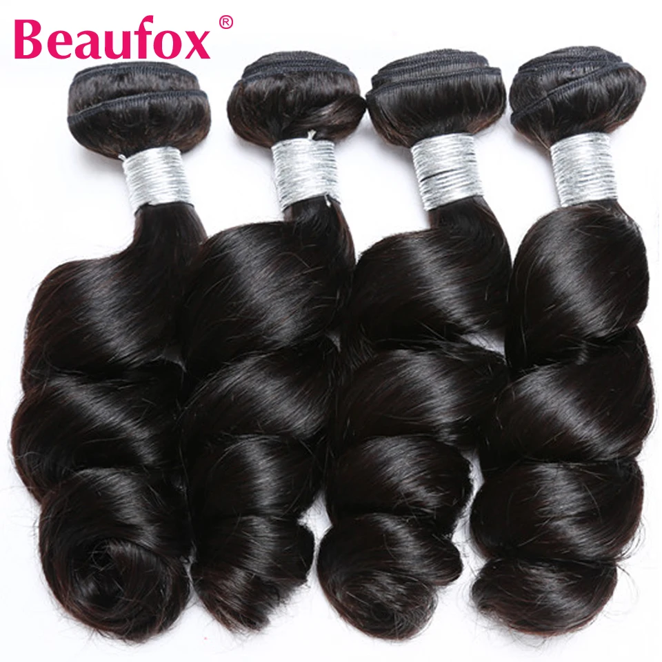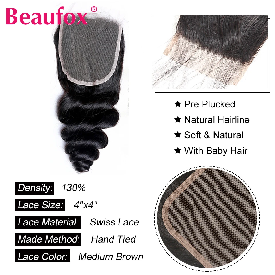 Волнистые пряди Beaufox с закрытием, бразильские волосы, пряди с закрытием, человеческие волосы Remy, 4 пряди с закрытием