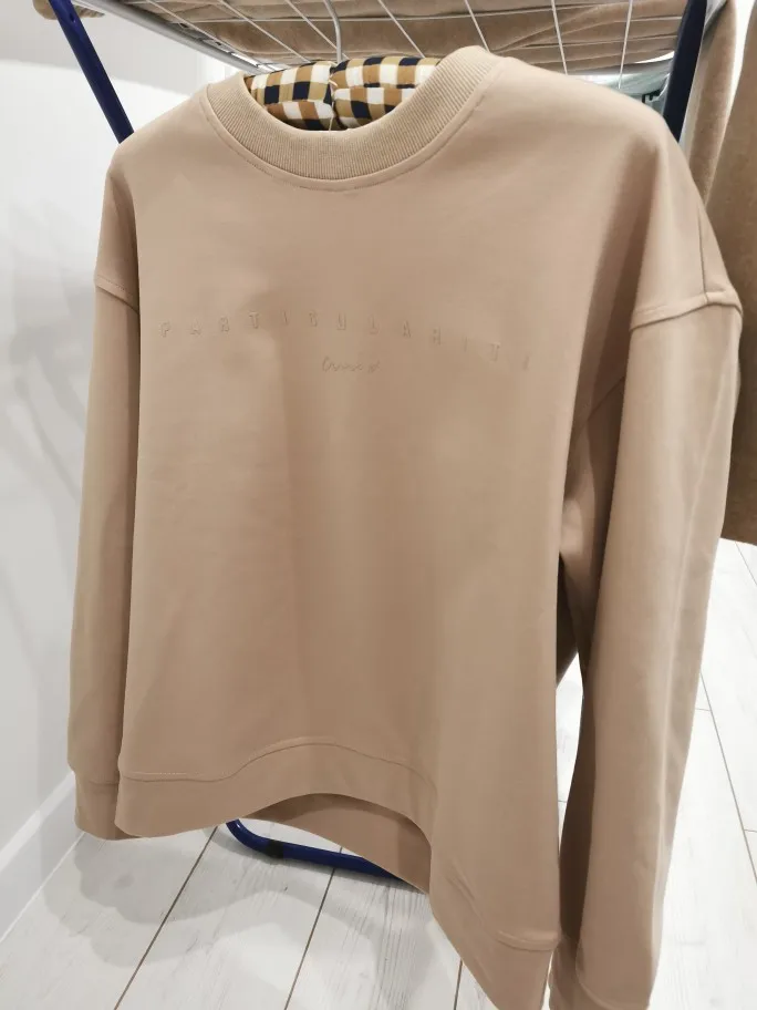 Посылка шла больше месяца. Разм. L Хороший оверсайз для моего 44 разм. Качество превосходное, внутри флис, не толстый. Понравился)