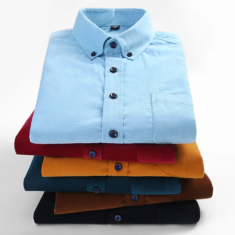 Рубашка мужская Вельветовая, однотонная, с длинным рукавом