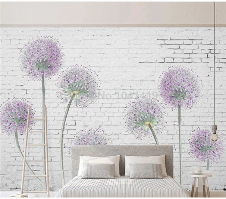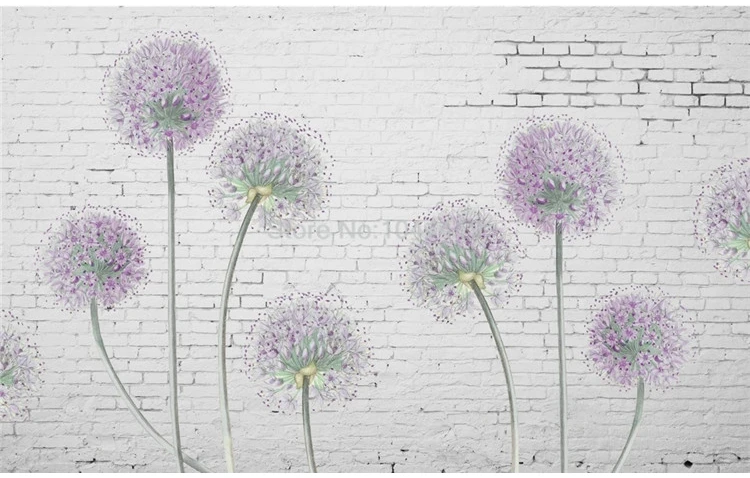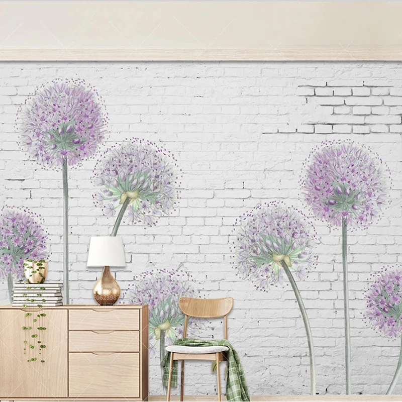 Пользовательские 3D обои современные 3D стерео белые кирпичные стены Фиолетовый Одуванчик фотообои Гостиная ТВ спальня Искусство домашний декор Фреска