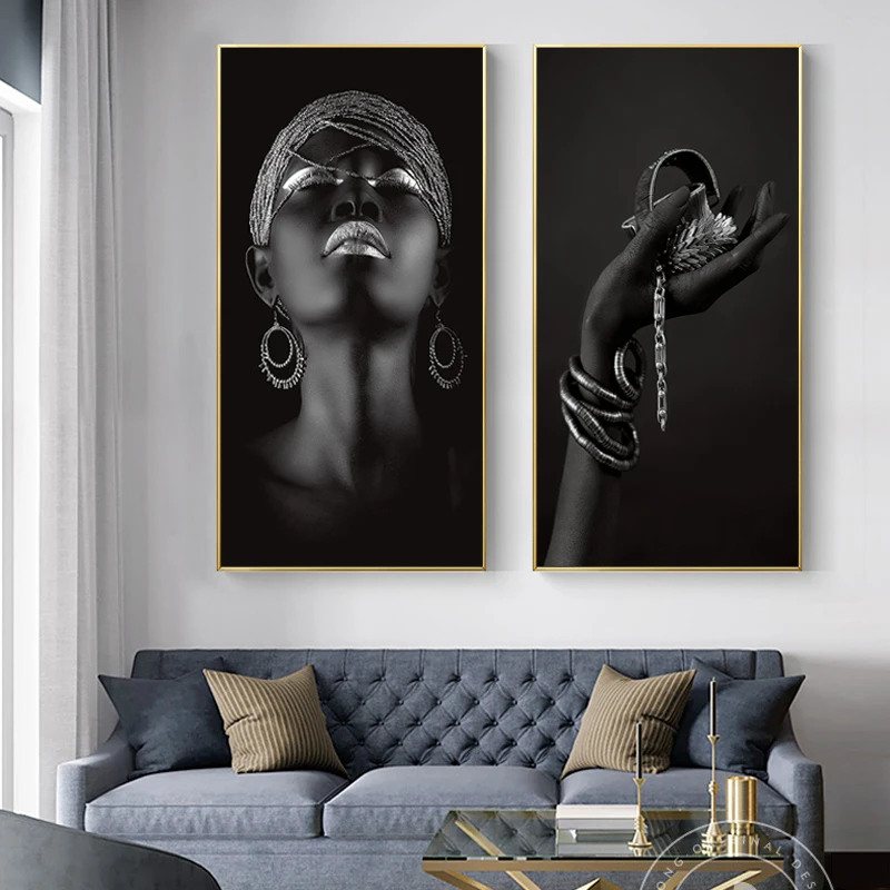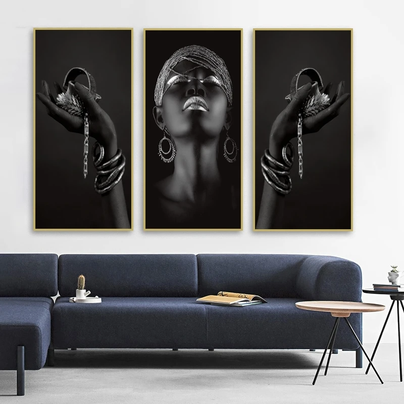 Сексуальная африканская Женская Золотая девушка лицо холст настенны...