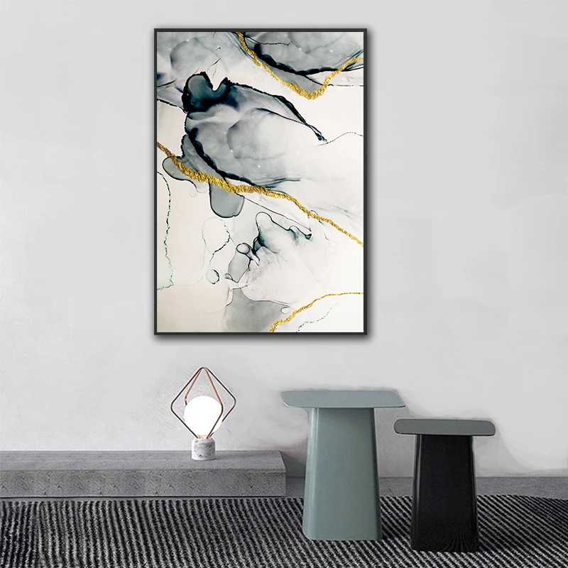 Абстрактные мраморные художественные картины на холсте, черные золотые настенные фотографии, печатные Плакаты для украшения стен гостиной