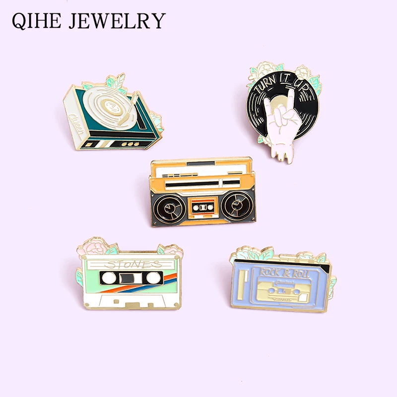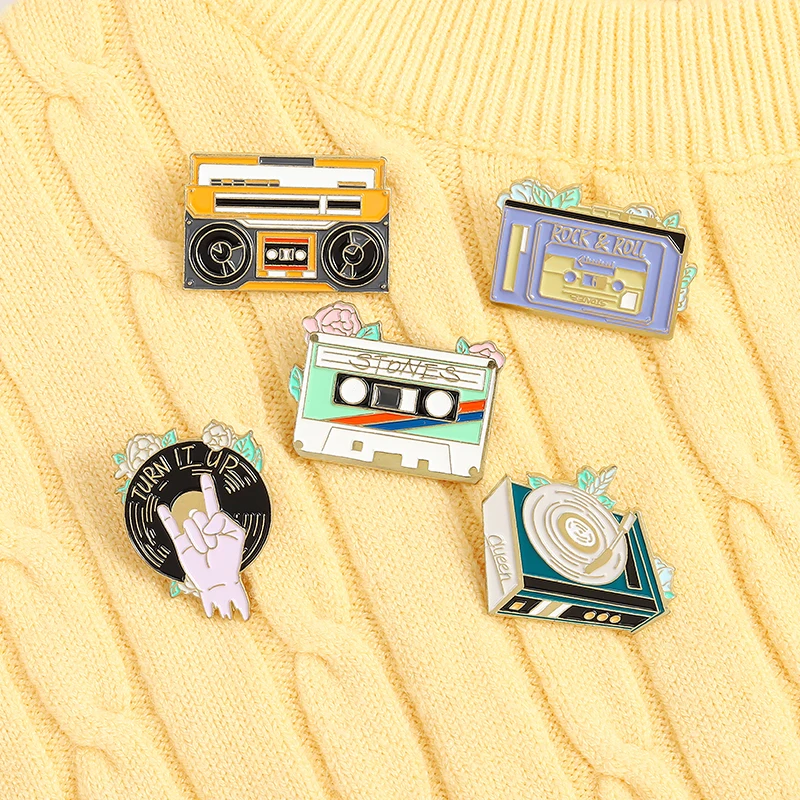 Панк любителей музыки эмали штырь старую кассету DJ Виниловый проигрыватель значок Броши Булавки на лацкан круто в готическом стиле, ювелирное изделие в подарок для друзей