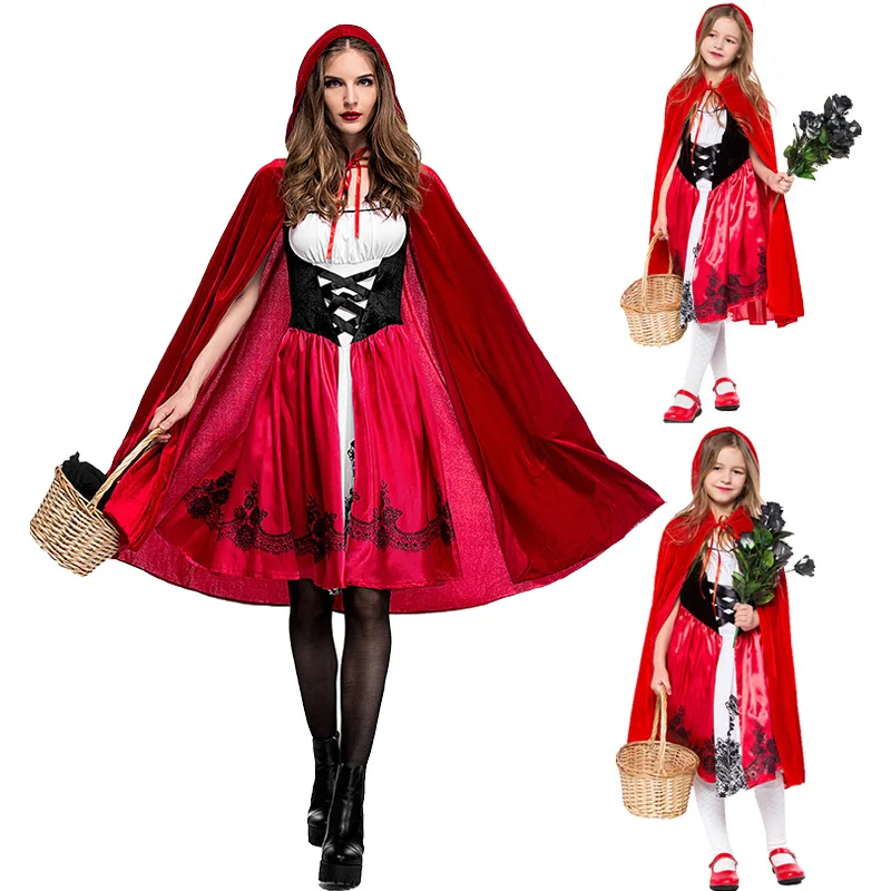 Костюмы на Хэллоуин для женщин и детей, Красная Шапочка, карнавальный костюм для взрослых, детская одежда для выступлений, вечерние платья и накидки