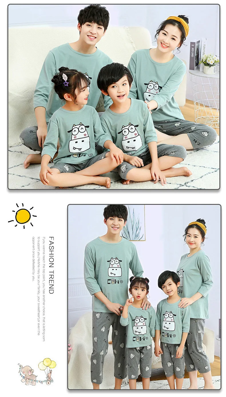 Комплект пижамный летний, хлопковый, для родителей и детей